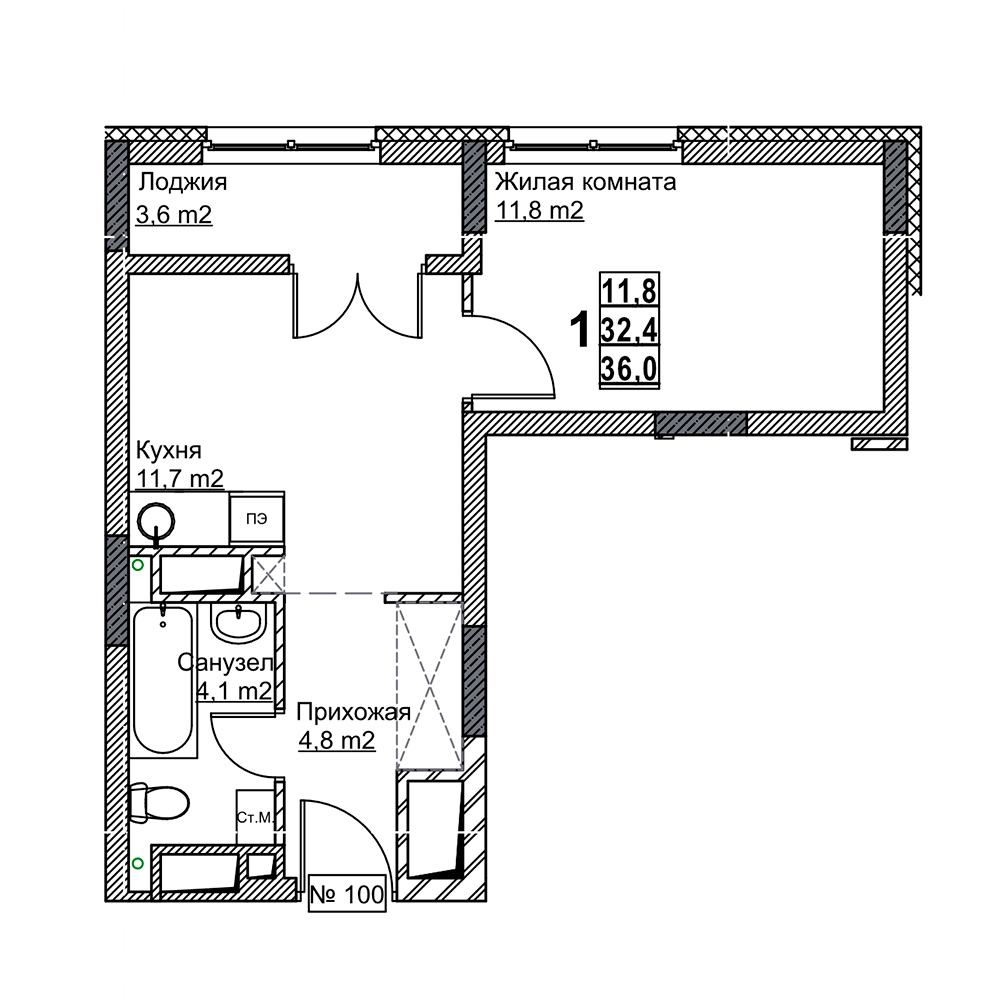 | Жилая площадь | 11.8 кв.м. |