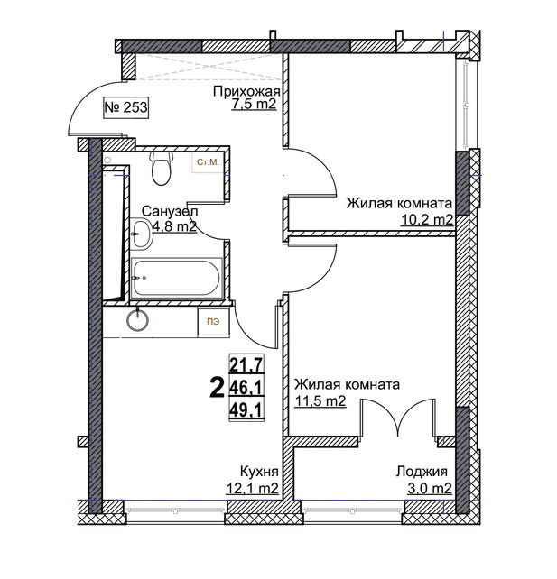 | Площадь | 49.1 кв.м. |