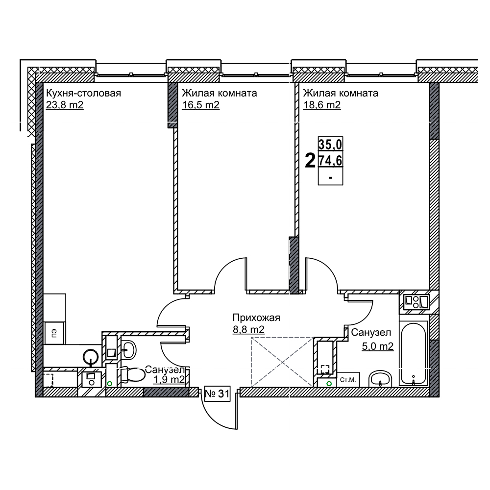 В продаже 2-комнатная квартира в новостройке жилого комплекса "Гранд-квартал "Бетанкур"" на 5 этаже, общая площадь74.6 м.кв., кухня 23.8 м.кв. Жилой комплекс располагается по адресу Гранд-квартал Бетанкур, 2. Стоимость данной квартиры составляет 17 490 000 рублей. На нашем сайте DOMEX, Вы можете оставить бесплатную on-line заявку на это предложение и с Вами свяжется напрямую застройщик.