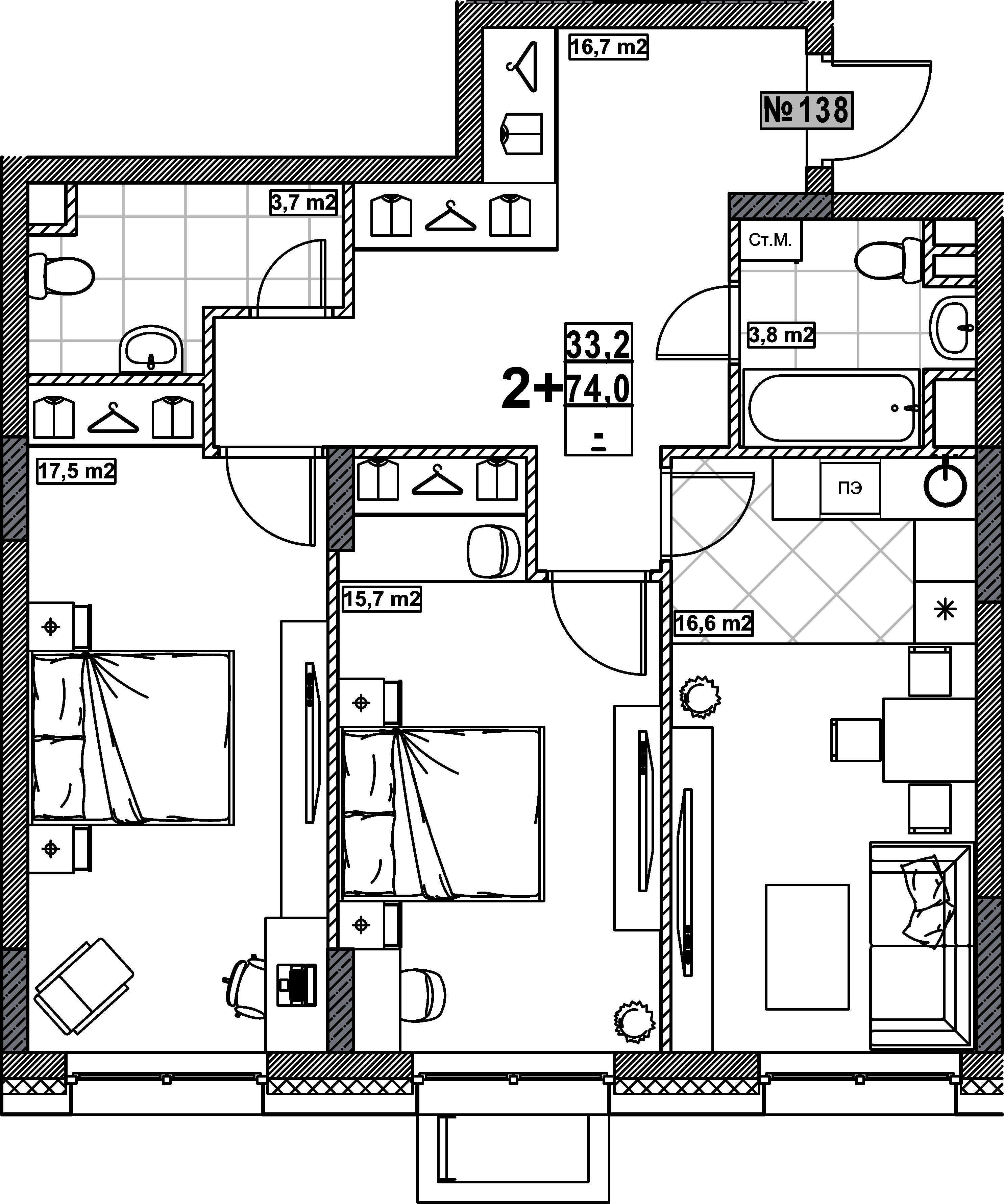 В продаже 2-комнатная квартира в новостройке жилого комплекса "Гранд-квартал "Бетанкур"" на 1 этаже, общая площадь74 м.кв., кухня 16.6 м.кв. Жилой комплекс располагается по адресу Гранд-квартал Бетанкур, 1. Стоимость данной квартиры составляет 12 210 000 рублей. На нашем сайте DOMEX, Вы можете оставить бесплатную on-line заявку на это предложение и с Вами свяжется напрямую застройщик.