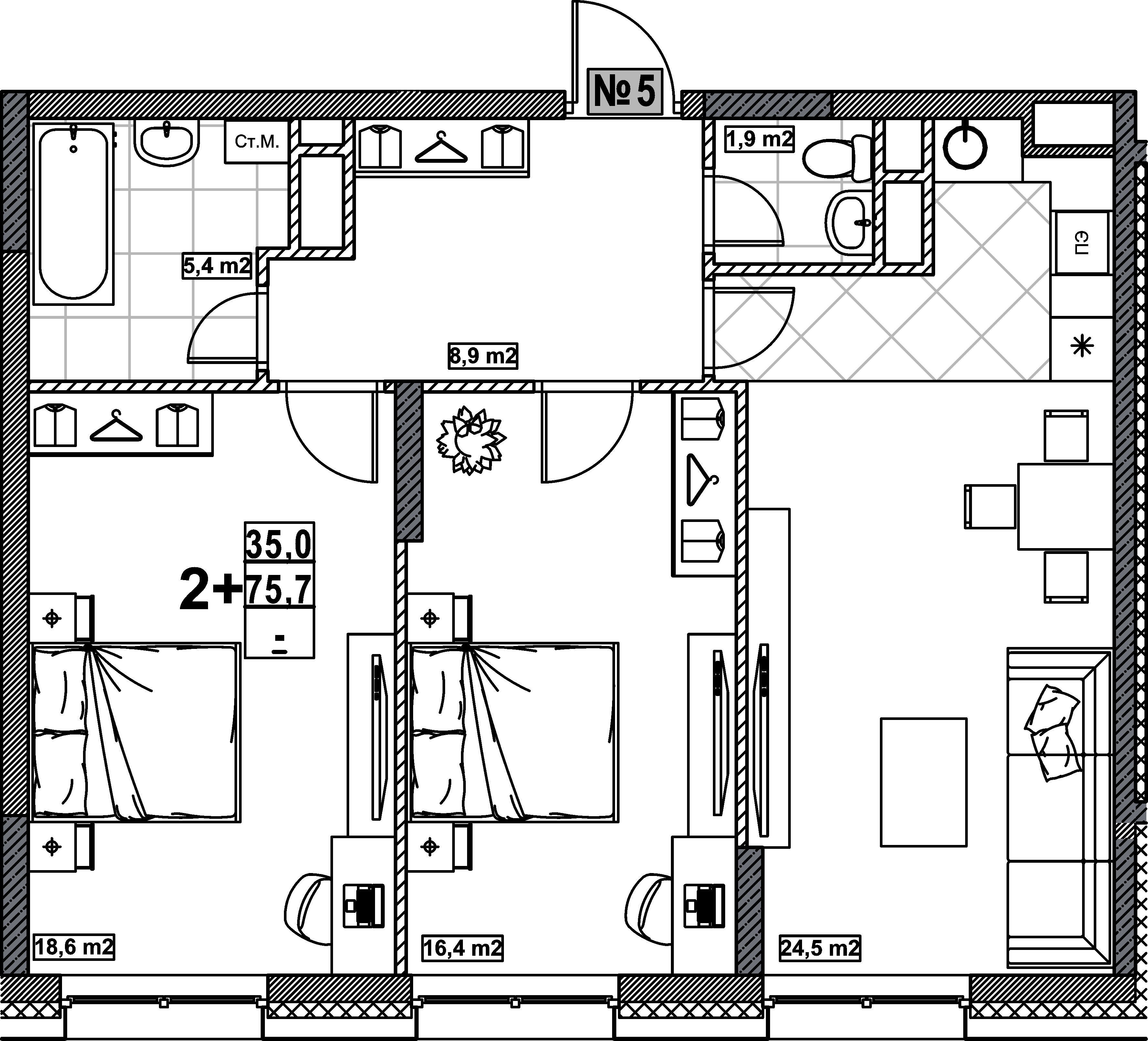 В продаже 2-комнатная квартира в новостройке жилого комплекса "Гранд-квартал "Бетанкур"" на 2 этаже, общая площадь75.7 м.кв., кухня 24.5 м.кв. Жилой комплекс располагается по адресу Гранд-квартал Бетанкур, 1. Стоимость данной квартиры составляет 15 140 000 рублей. На нашем сайте DOMEX, Вы можете оставить бесплатную on-line заявку на это предложение и с Вами свяжется напрямую застройщик.