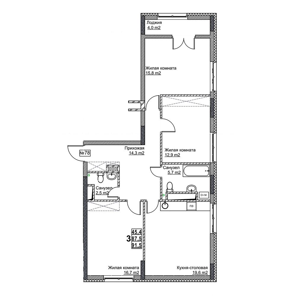 | Площадь | 91.5 кв.м. |