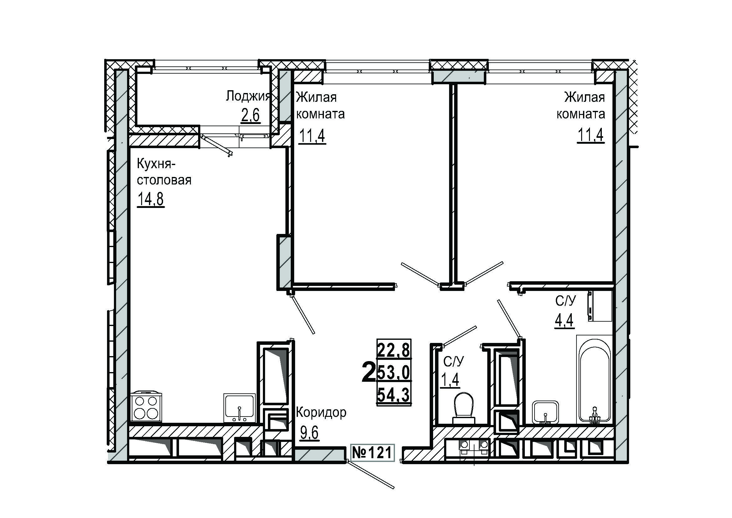 | Площадь | 54.3 кв.м. |