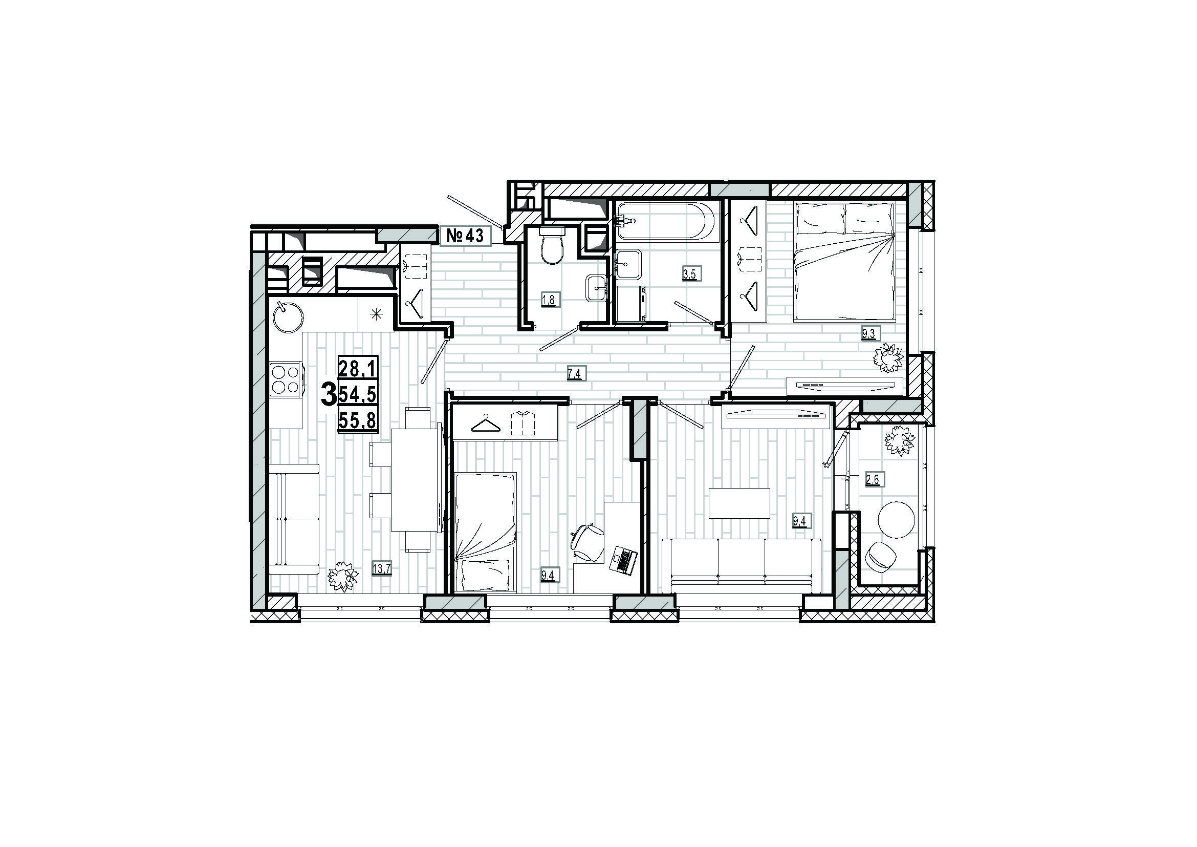 | Площадь | 55.8 кв.м. |