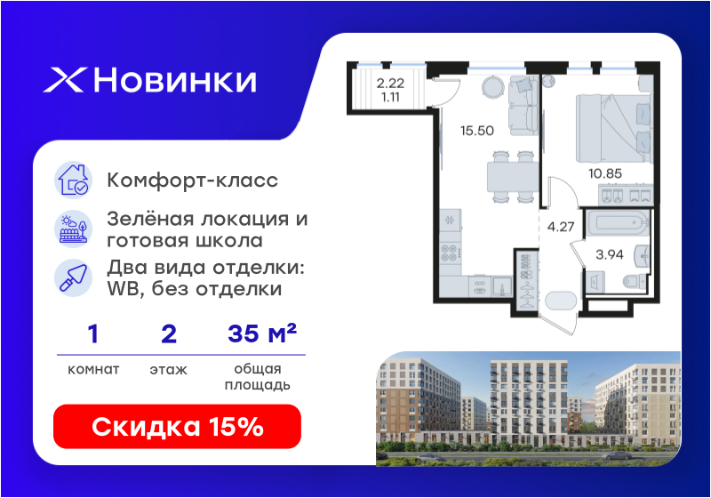 | Площадь кухни | 15,50 кв.м. |