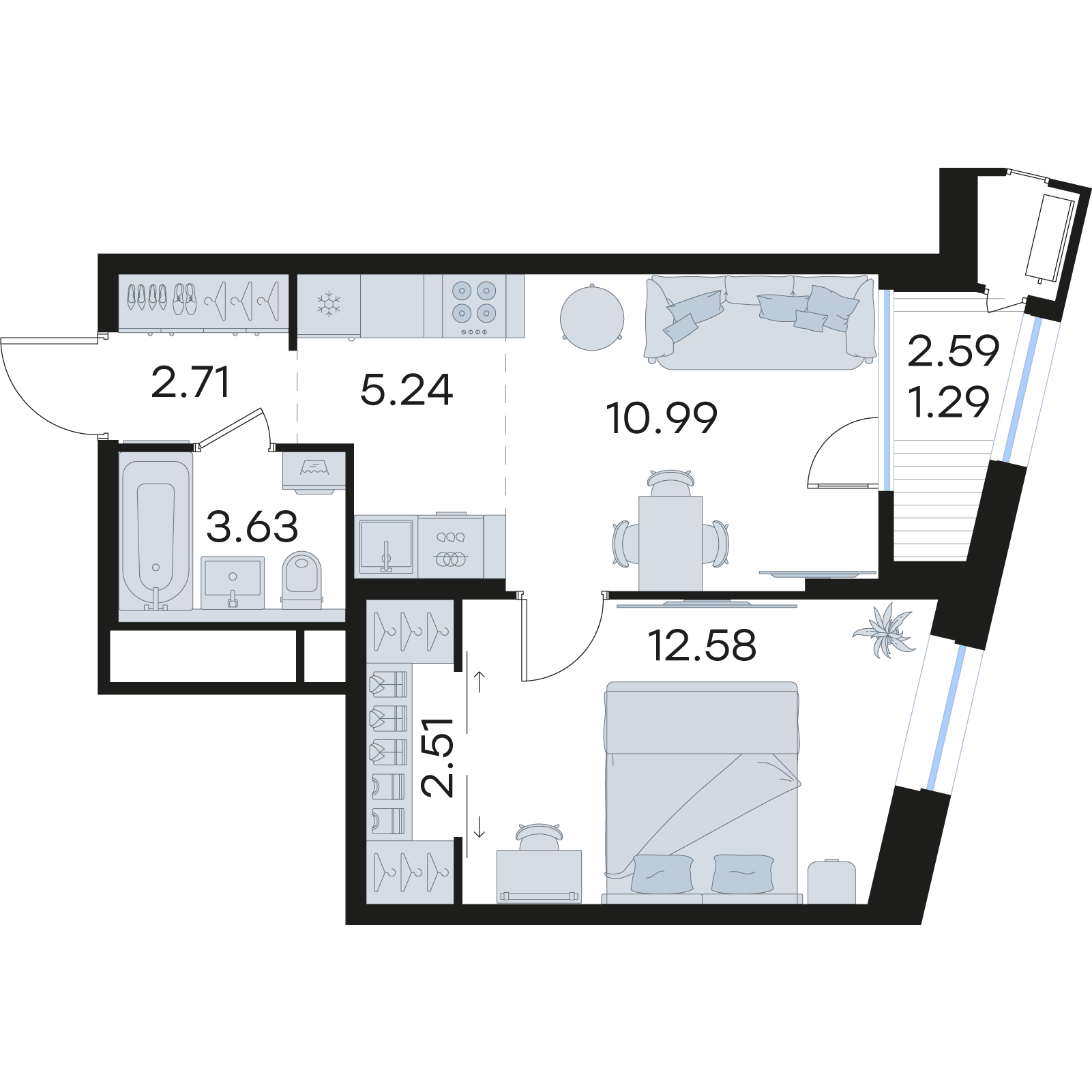 | Жилая площадь | 12,58 кв.м. |