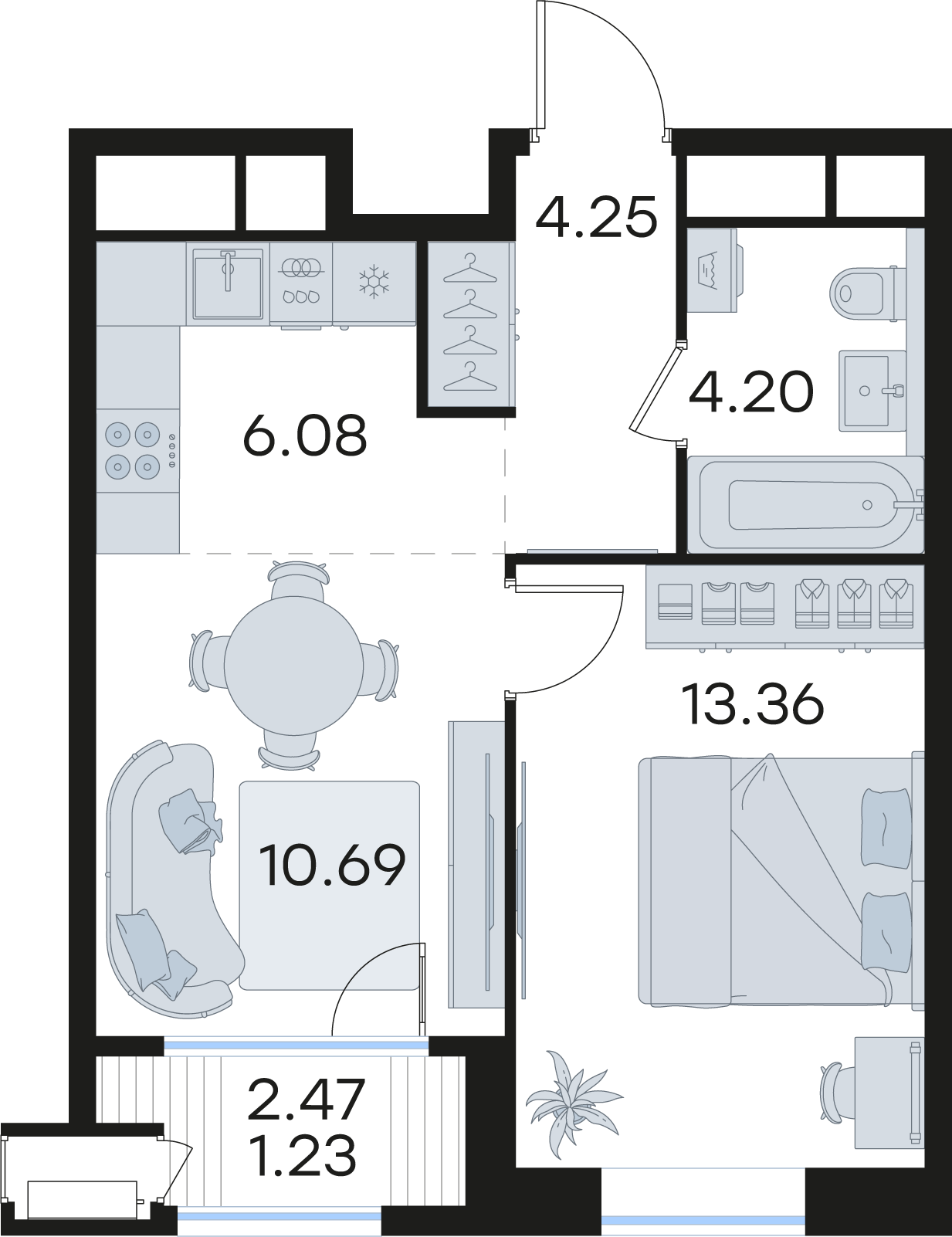 | Жилая площадь | 13,36 кв.м. |