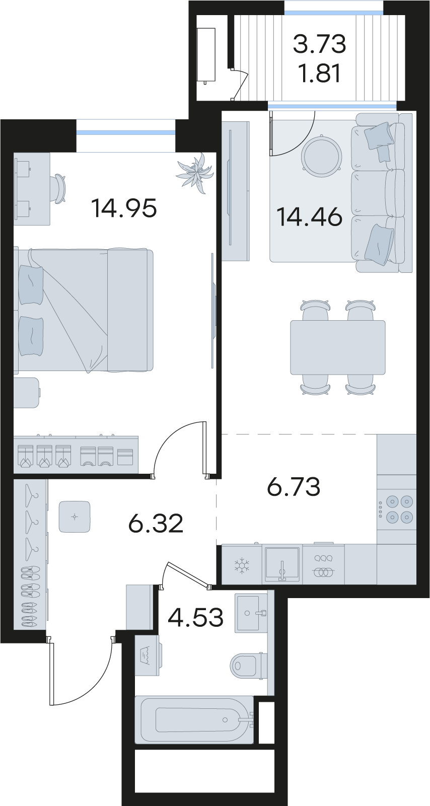 | Площадь кухни | 6,73 кв.м. |