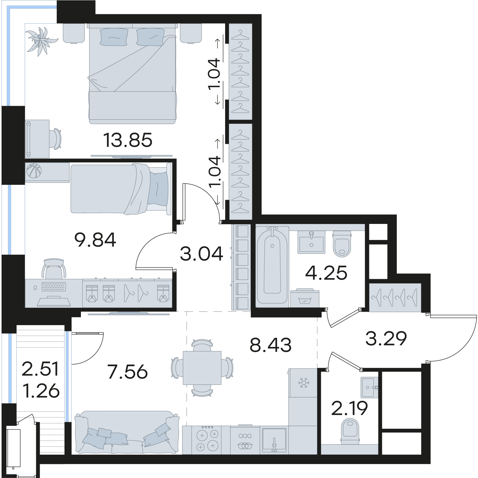 | Площадь кухни | 8,43 кв.м. |