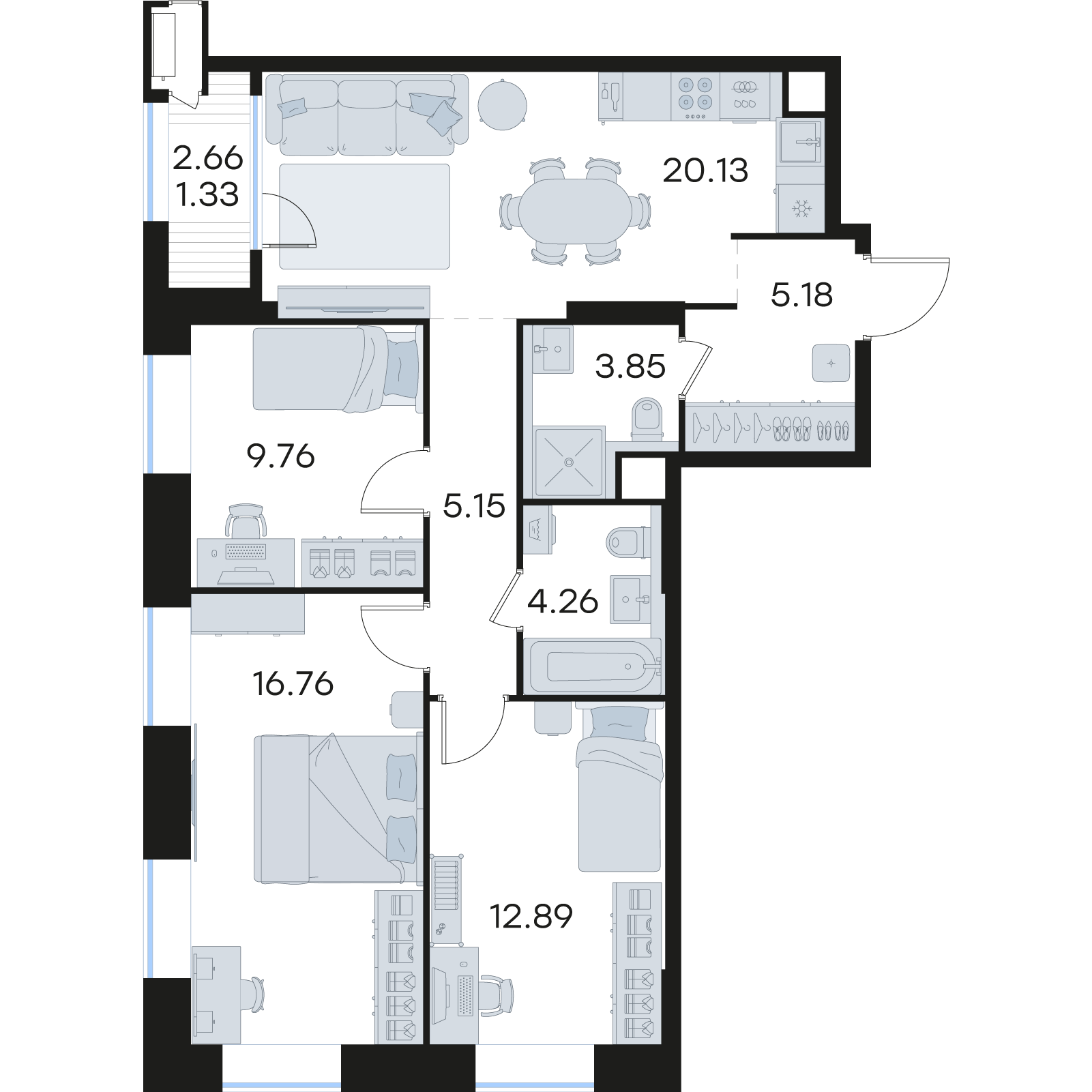 | Площадь кухни | 20,13 кв.м. |