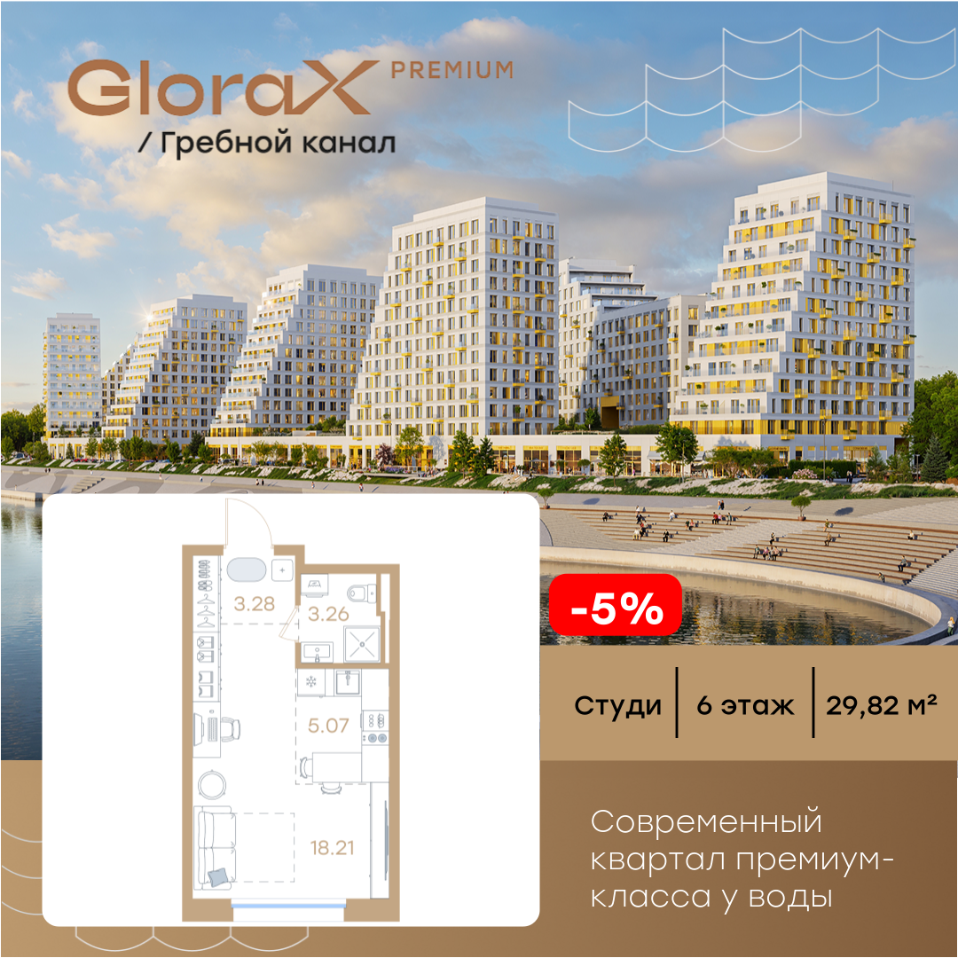 В продаже квартира в новостройке жилого комплекса "GloraX Premium Гребной канал" на 6 этаже, общая площадь29,82 м.кв. Жилой комплекс располагается по адресу Набережная Гребного канала улица . Стоимость данной квартиры составляет 10 421 051 рублей. На нашем сайте DOMEX, Вы можете оставить бесплатную on-line заявку на это предложение и с Вами свяжется напрямую застройщик.