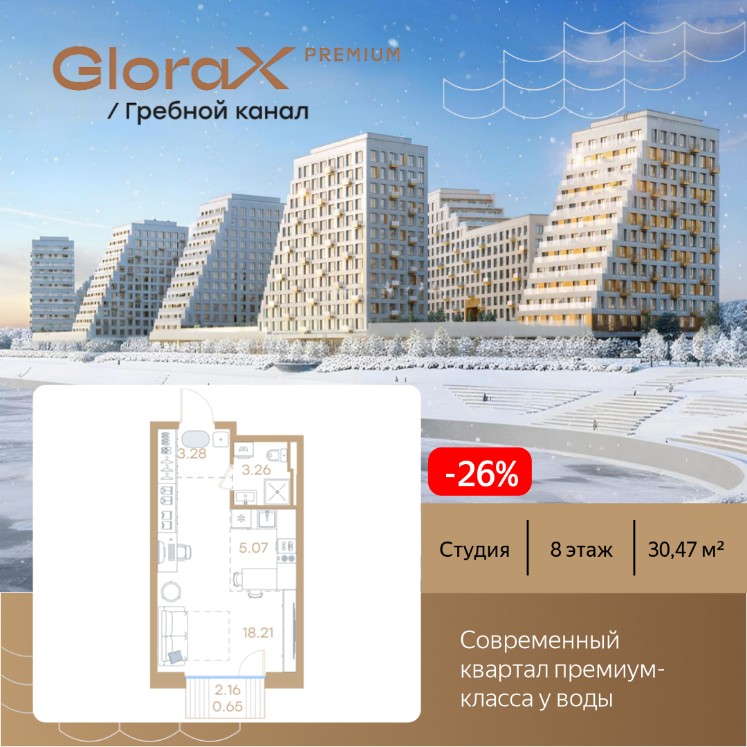 В продаже квартира в новостройке жилого комплекса "GloraX Premium Гребной канал" на 8 этаже, общая площадь30,47 м.кв. Жилой комплекс располагается по адресу Набережная Гребного канала улица . Стоимость данной квартиры составляет 11 702 701 рублей. На нашем сайте DOMEX, Вы можете оставить бесплатную on-line заявку на это предложение и с Вами свяжется напрямую застройщик.