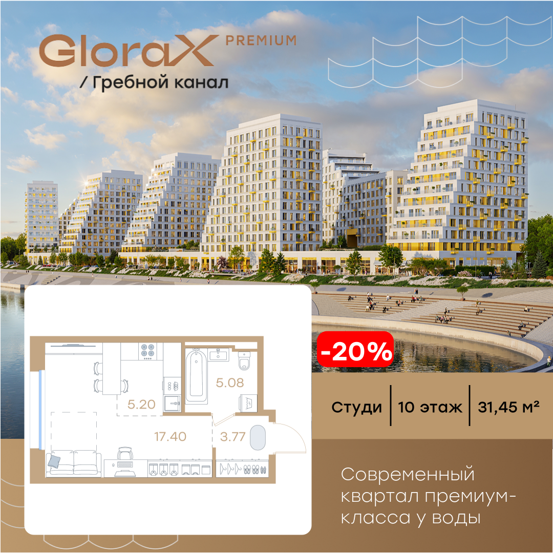 В продаже квартира в новостройке жилого комплекса "GloraX Premium Гребной канал" на 10 этаже, общая площадь31,45 м.кв. Жилой комплекс располагается по адресу Набережная Гребного канала улица . Стоимость данной квартиры составляет 11 087 498 рублей. На нашем сайте DOMEX, Вы можете оставить бесплатную on-line заявку на это предложение и с Вами свяжется напрямую застройщик.