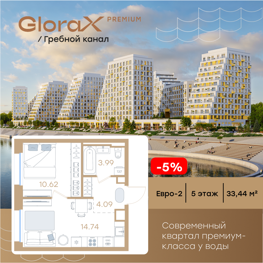 В продаже 1-комнатная квартира в новостройке жилого комплекса "GloraX Premium Гребной канал" на 5 этаже, общая площадь33,44 м.кв., кухня 14,74 м.кв. Жилой комплекс располагается по адресу Набережная Гребного канала улица . Стоимость данной квартиры составляет 10 252 630 рублей. На нашем сайте DOMEX, Вы можете оставить бесплатную on-line заявку на это предложение и с Вами свяжется напрямую застройщик.