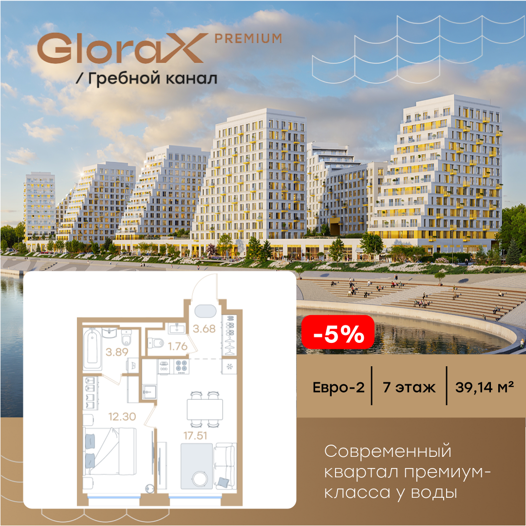 В продаже 1-комнатная квартира в новостройке жилого комплекса "GloraX Premium Гребной канал" на 7 этаже, общая площадь39,14 м.кв., кухня 17,51 м.кв. Жилой комплекс располагается по адресу Набережная Гребного канала улица . Стоимость данной квартиры составляет 14 010 525 рублей. На нашем сайте DOMEX, Вы можете оставить бесплатную on-line заявку на это предложение и с Вами свяжется напрямую застройщик.