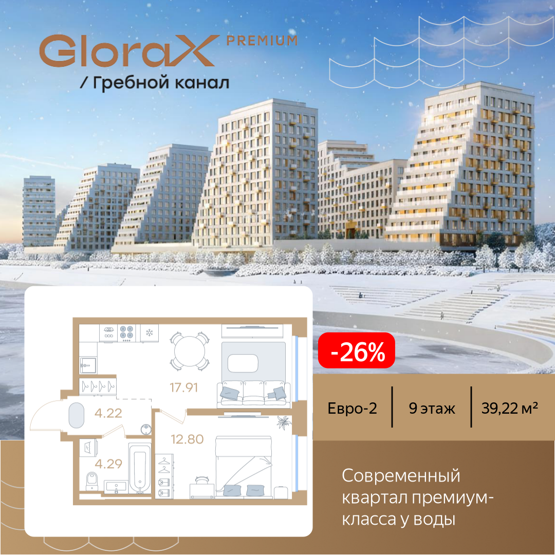 В продаже 1-комнатная квартира в новостройке жилого комплекса "GloraX Premium Гребной канал" на 9 этаже, общая площадь39,22 м.кв., кухня 17,91 м.кв. Жилой комплекс располагается по адресу Набережная Гребного канала улица . Стоимость данной квартиры составляет 16 675 674 рублей. На нашем сайте DOMEX, Вы можете оставить бесплатную on-line заявку на это предложение и с Вами свяжется напрямую застройщик.