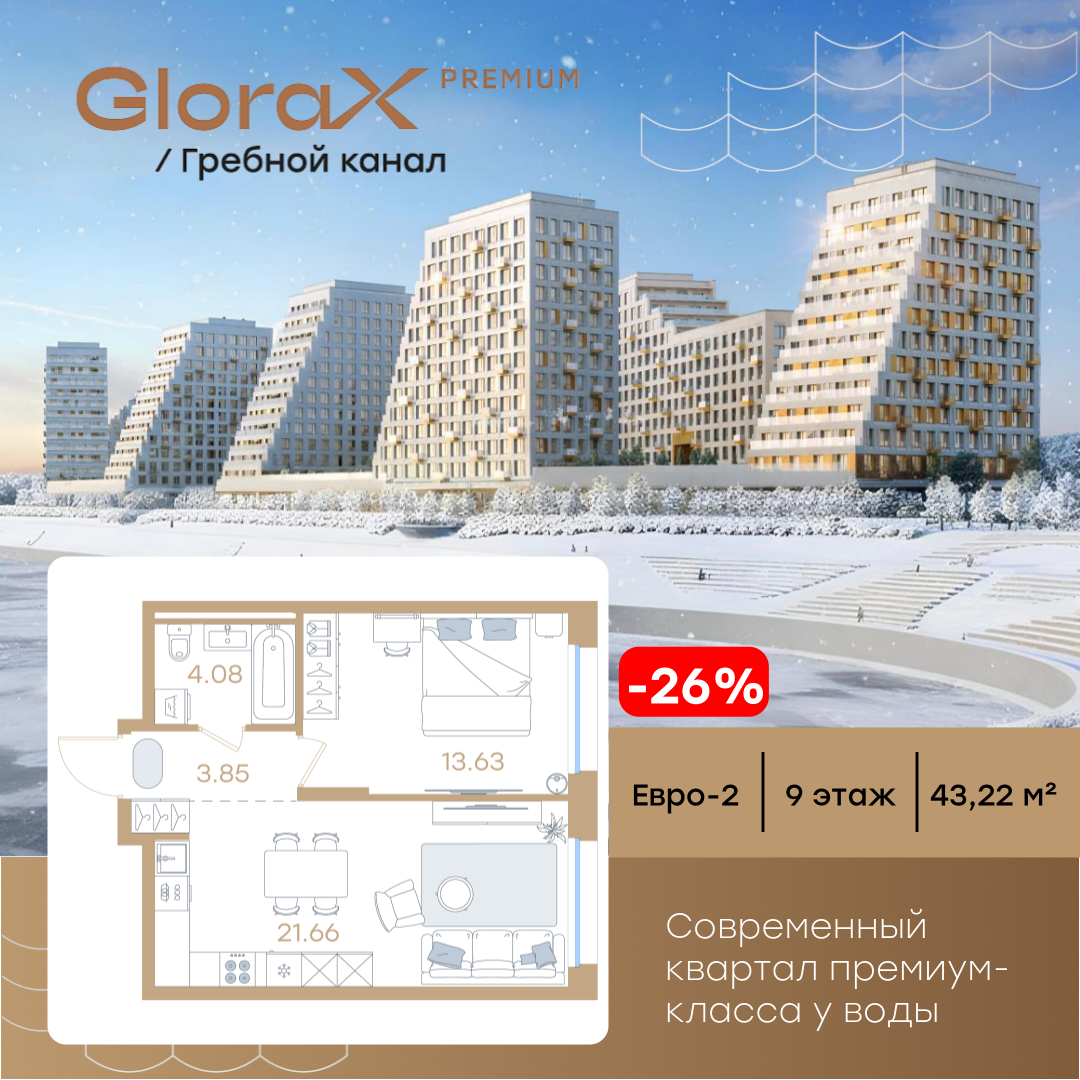 В продаже 1-комнатная квартира в новостройке жилого комплекса "GloraX Premium Гребной канал" на 9 этаже, общая площадь43,22 м.кв., кухня 21,66 м.кв. Жилой комплекс располагается по адресу Набережная Гребного канала улица . Стоимость данной квартиры составляет 12 891 890 рублей. На нашем сайте DOMEX, Вы можете оставить бесплатную on-line заявку на это предложение и с Вами свяжется напрямую застройщик.