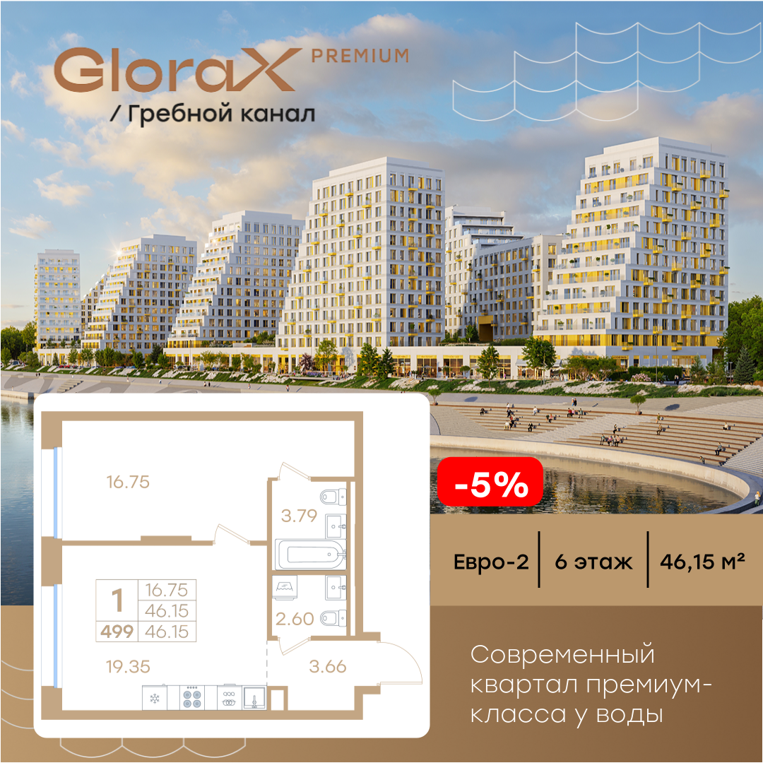 В продаже 1-комнатная квартира в новостройке жилого комплекса "GloraX Premium Гребной канал" на 6 этаже, общая площадь46,15 м.кв., кухня 19,35 м.кв. Жилой комплекс располагается по адресу Набережная Гребного канала улица . Стоимость данной квартиры составляет 13 874 998 рублей. На нашем сайте DOMEX, Вы можете оставить бесплатную on-line заявку на это предложение и с Вами свяжется напрямую застройщик.
