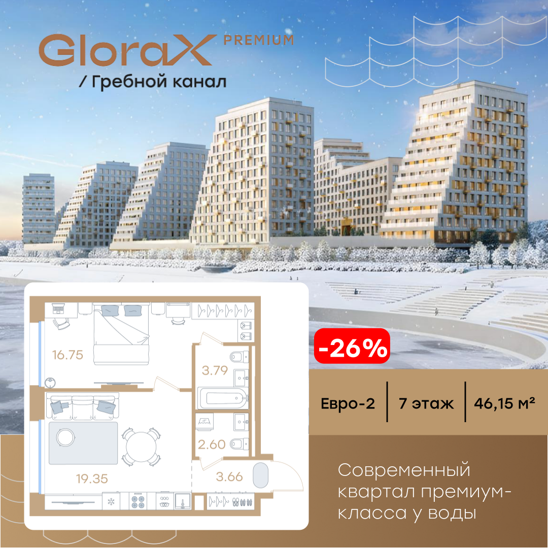 В продаже 1-комнатная квартира в новостройке жилого комплекса "GloraX Premium Гребной канал" на 7 этаже, общая площадь46,15 м.кв., кухня 19,35 м.кв. Жилой комплекс располагается по адресу Набережная Гребного канала улица . Стоимость данной квартиры составляет 12 689 187 рублей. На нашем сайте DOMEX, Вы можете оставить бесплатную on-line заявку на это предложение и с Вами свяжется напрямую застройщик.