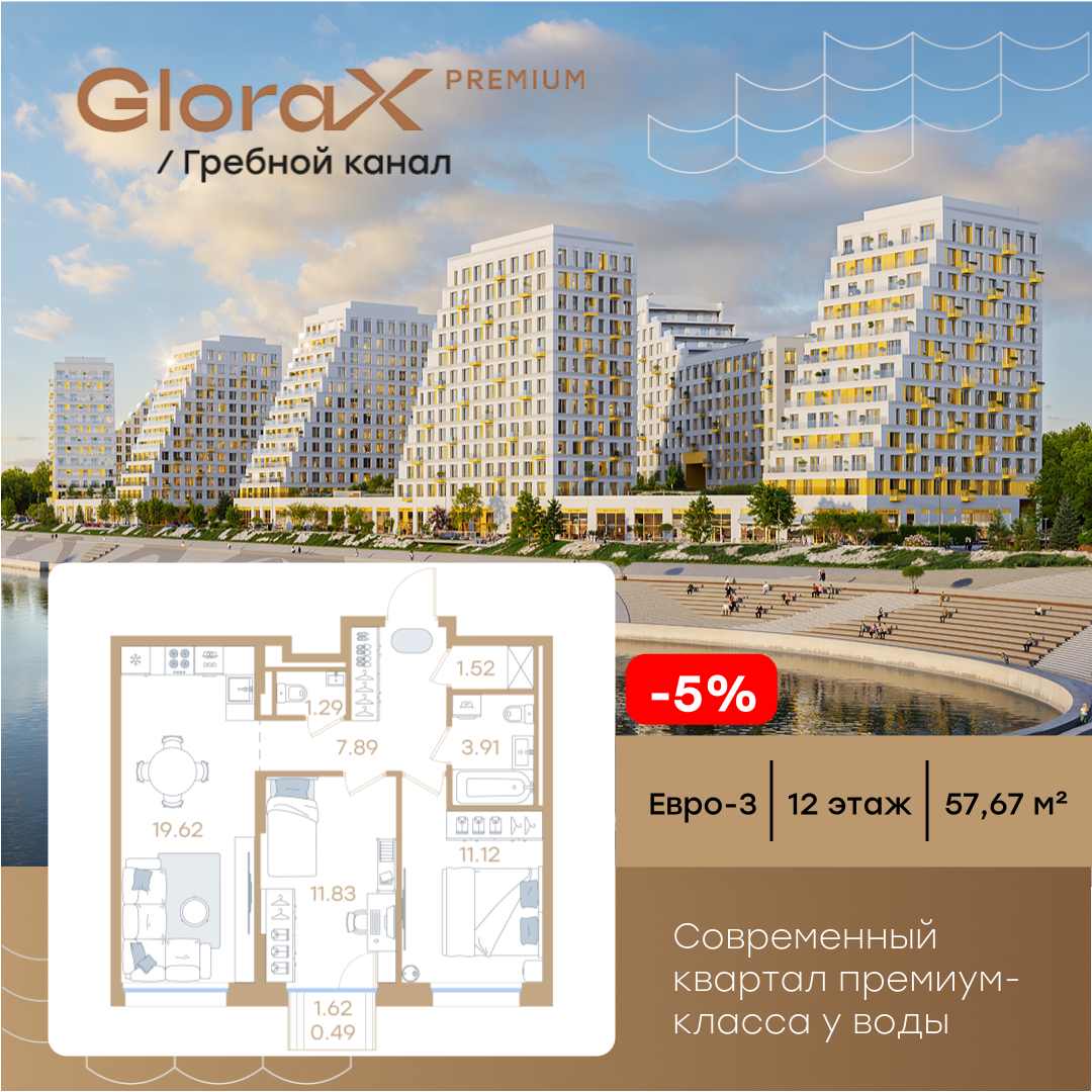 В продаже 2-комнатная квартира в новостройке жилого комплекса "GloraX Premium Гребной канал" на 12 этаже, общая площадь57,67 м.кв., кухня 19,62 м.кв. Жилой комплекс располагается по адресу Набережная Гребного канала улица . Стоимость данной квартиры составляет 19 178 946 рублей. На нашем сайте DOMEX, Вы можете оставить бесплатную on-line заявку на это предложение и с Вами свяжется напрямую застройщик.