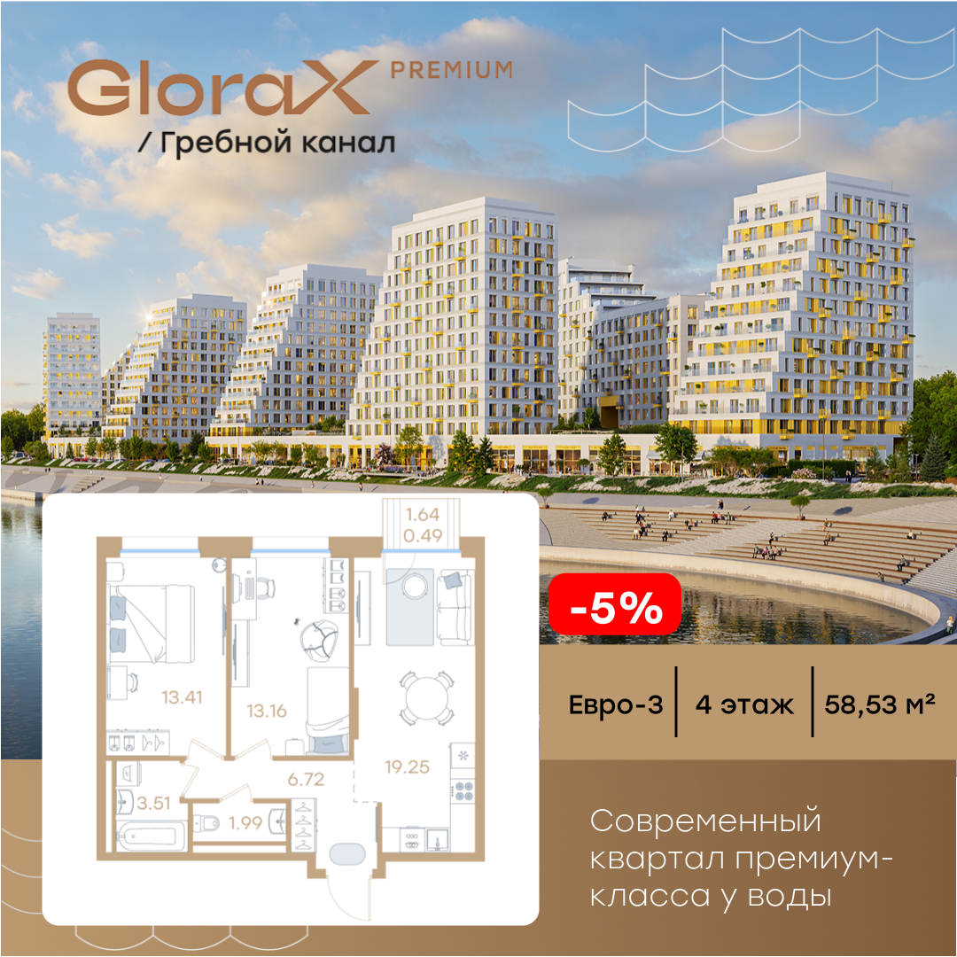 В продаже 2-комнатная квартира в новостройке жилого комплекса "GloraX Premium Гребной канал" на 4 этаже, общая площадь58,53 м.кв., кухня 19,25 м.кв. Жилой комплекс располагается по адресу Набережная Гребного канала улица . Стоимость данной квартиры составляет 17 652 630 рублей. На нашем сайте DOMEX, Вы можете оставить бесплатную on-line заявку на это предложение и с Вами свяжется напрямую застройщик.