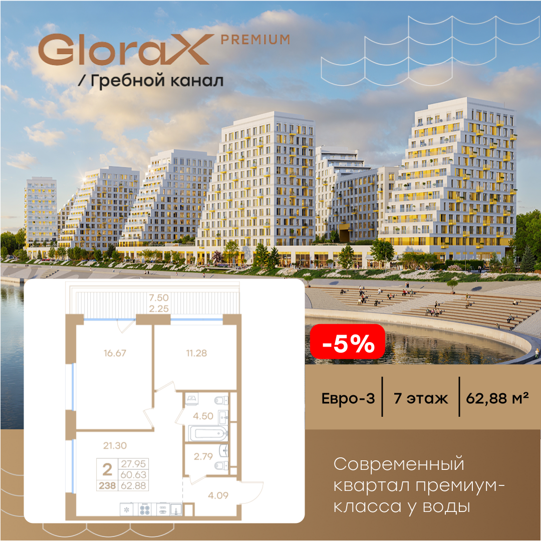 В продаже 2-комнатная квартира в новостройке жилого комплекса "GloraX Premium Гребной канал" на 7 этаже, общая площадь62,88 м.кв., кухня 21,30 м.кв. Жилой комплекс располагается по адресу Набережная Гребного канала улица . Стоимость данной квартиры составляет 21 031 577 рублей. На нашем сайте DOMEX, Вы можете оставить бесплатную on-line заявку на это предложение и с Вами свяжется напрямую застройщик.