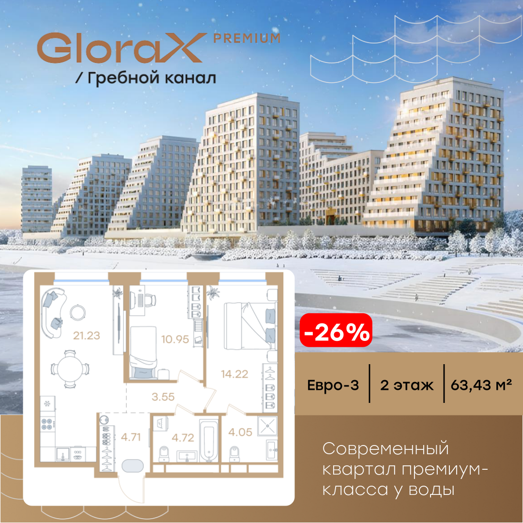 В продаже 2-комнатная квартира в новостройке жилого комплекса "GloraX Premium Гребной канал" на 2 этаже, общая площадь63,43 м.кв., кухня 21,23 м.кв. Жилой комплекс располагается по адресу Набережная Гребного канала улица . Стоимость данной квартиры составляет 15 675 674 рублей. На нашем сайте DOMEX, Вы можете оставить бесплатную on-line заявку на это предложение и с Вами свяжется напрямую застройщик.