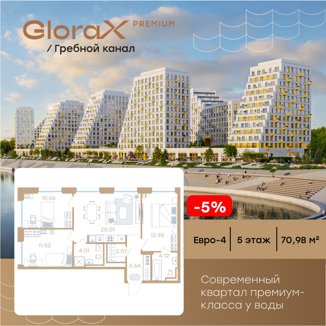 В продаже 3-комнатная квартира в новостройке жилого комплекса "GloraX Premium Гребной канал" на 5 этаже, общая площадь70,98 м.кв., кухня 20,01 м.кв. Жилой комплекс располагается по адресу Набережная Гребного канала улица . Стоимость данной квартиры составляет 19 926 314 рублей. На нашем сайте DOMEX, Вы можете оставить бесплатную on-line заявку на это предложение и с Вами свяжется напрямую застройщик.