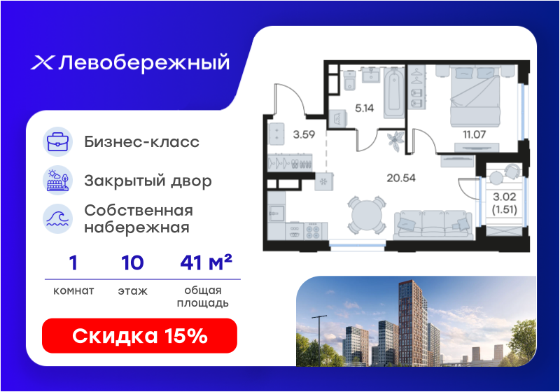 В продаже 1-комнатная квартира в новостройке жилого комплекса "Левобережный" на 10 этаже, общая площадь41,85 м.кв., кухня 20,54 м.кв. Жилой комплекс располагается по адресу Воротынская улица , д. 2. Стоимость данной квартиры составляет 9 039 999 рублей. На нашем сайте DOMEX, Вы можете оставить бесплатную on-line заявку на это предложение и с Вами свяжется напрямую застройщик.