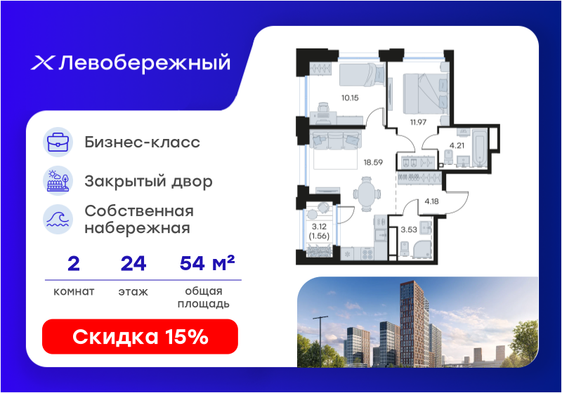 В продаже 2-комнатная квартира в новостройке жилого комплекса "Левобережный" на 24 этаже, общая площадь54,19 м.кв., кухня 18,59 м.кв. Жилой комплекс располагается по адресу Воротынская улица , д. 2. Стоимость данной квартиры составляет 10 929 999 рублей. На нашем сайте DOMEX, Вы можете оставить бесплатную on-line заявку на это предложение и с Вами свяжется напрямую застройщик.
