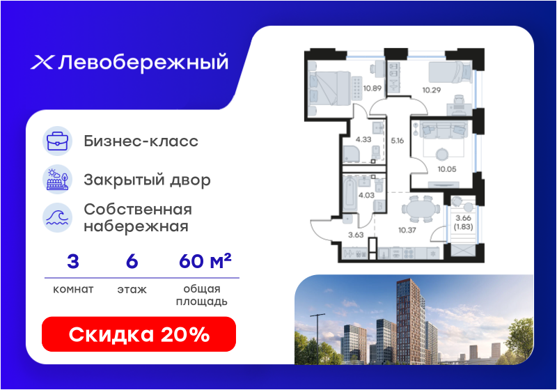 В продаже 3-комнатная квартира в новостройке жилого комплекса "Левобережный" на 6 этаже, общая площадь60,58 м.кв., кухня 10,37 м.кв. Жилой комплекс располагается по адресу Воротынская улица , д. 2. Стоимость данной квартиры составляет 11 383 783 рублей. На нашем сайте DOMEX, Вы можете оставить бесплатную on-line заявку на это предложение и с Вами свяжется напрямую застройщик.