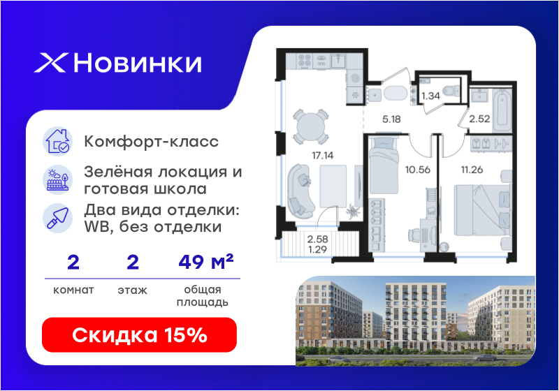 | Площадь кухни | 17,14 кв.м. |
