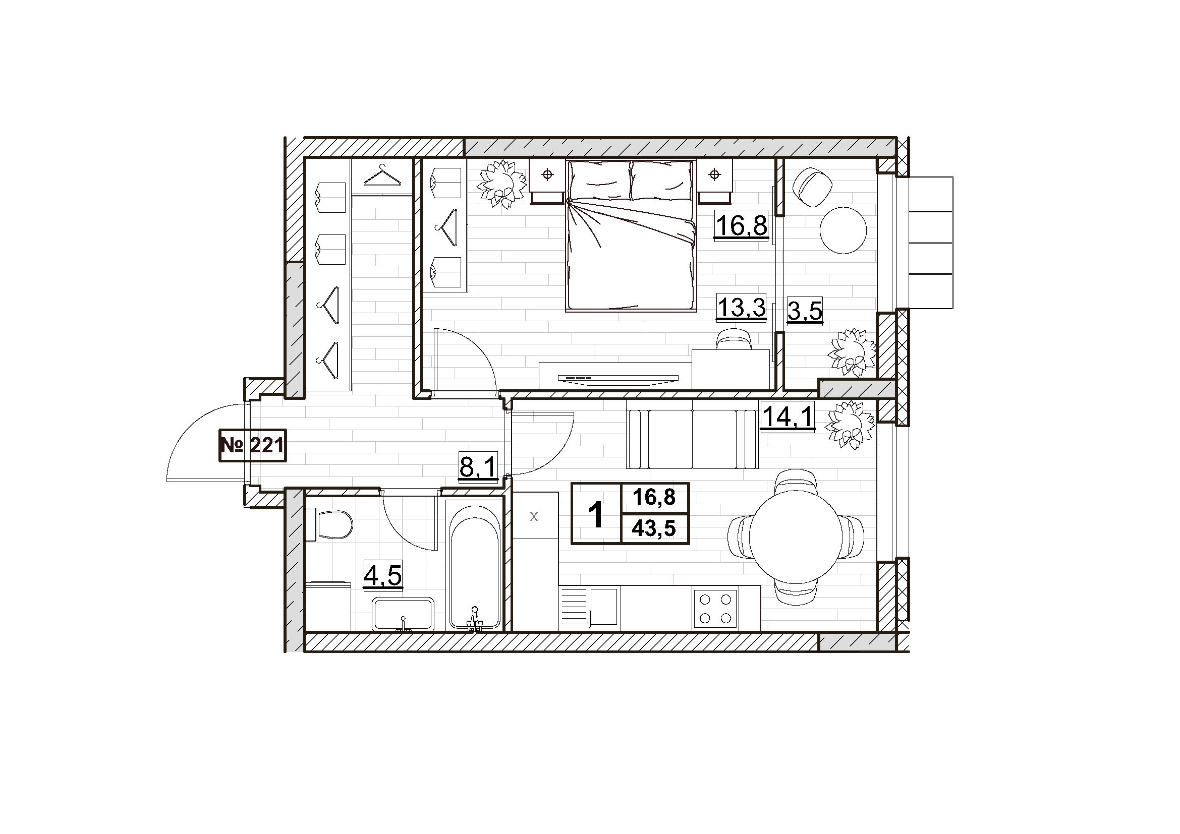 | Площадь | 43.5 кв.м. |