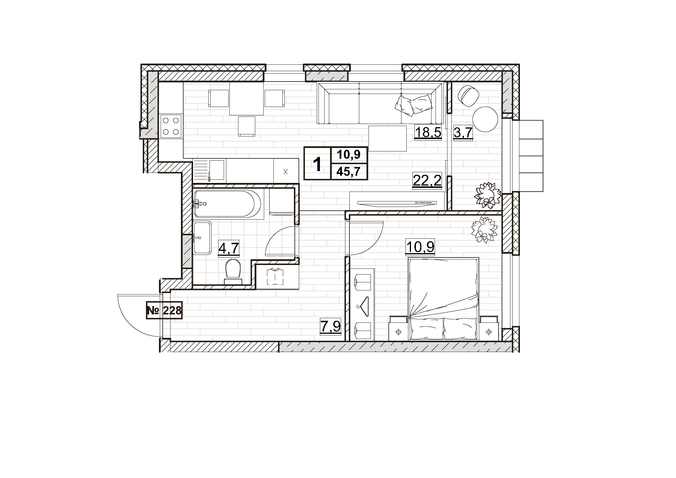| Площадь | 45.7 кв.м. |