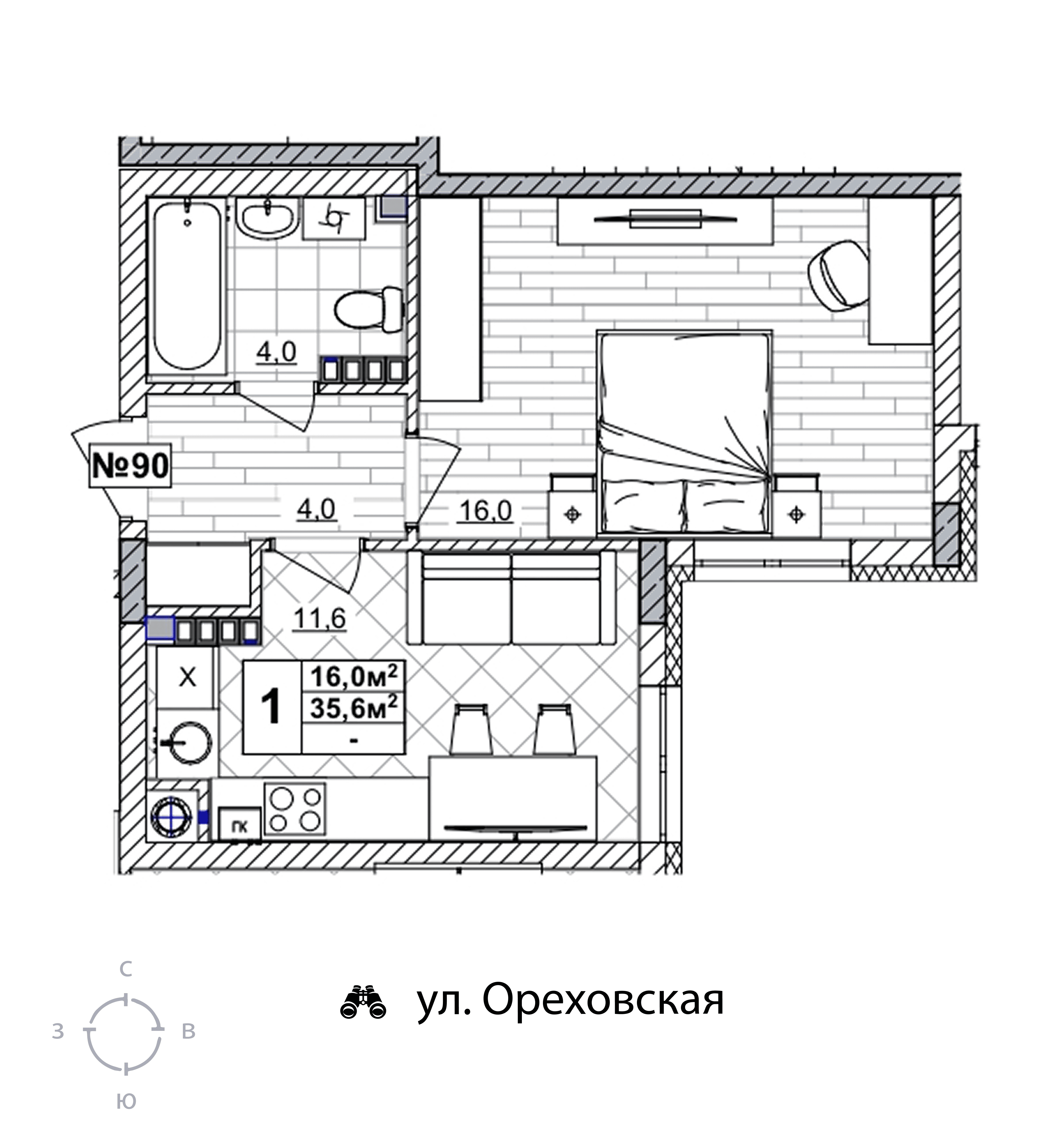 Площадь 35.6 кв.м.