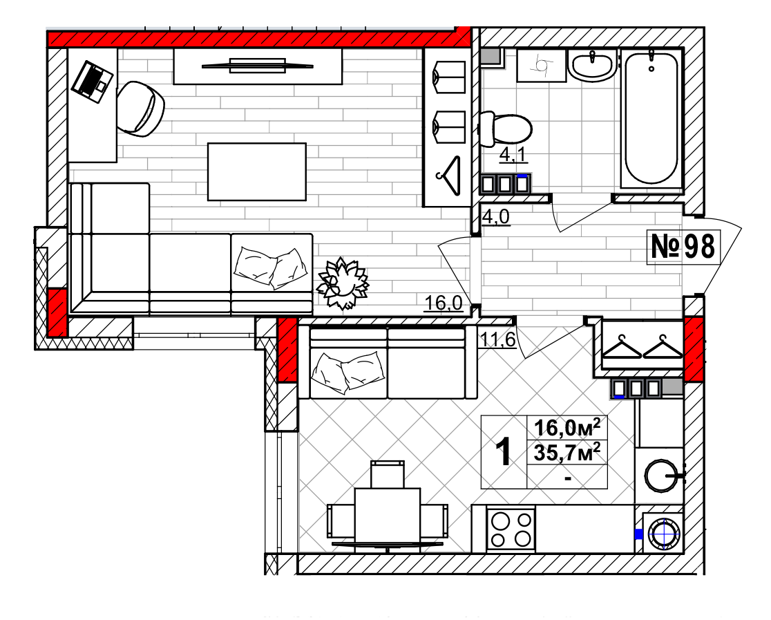 | Площадь | 35.7 кв.м. |
