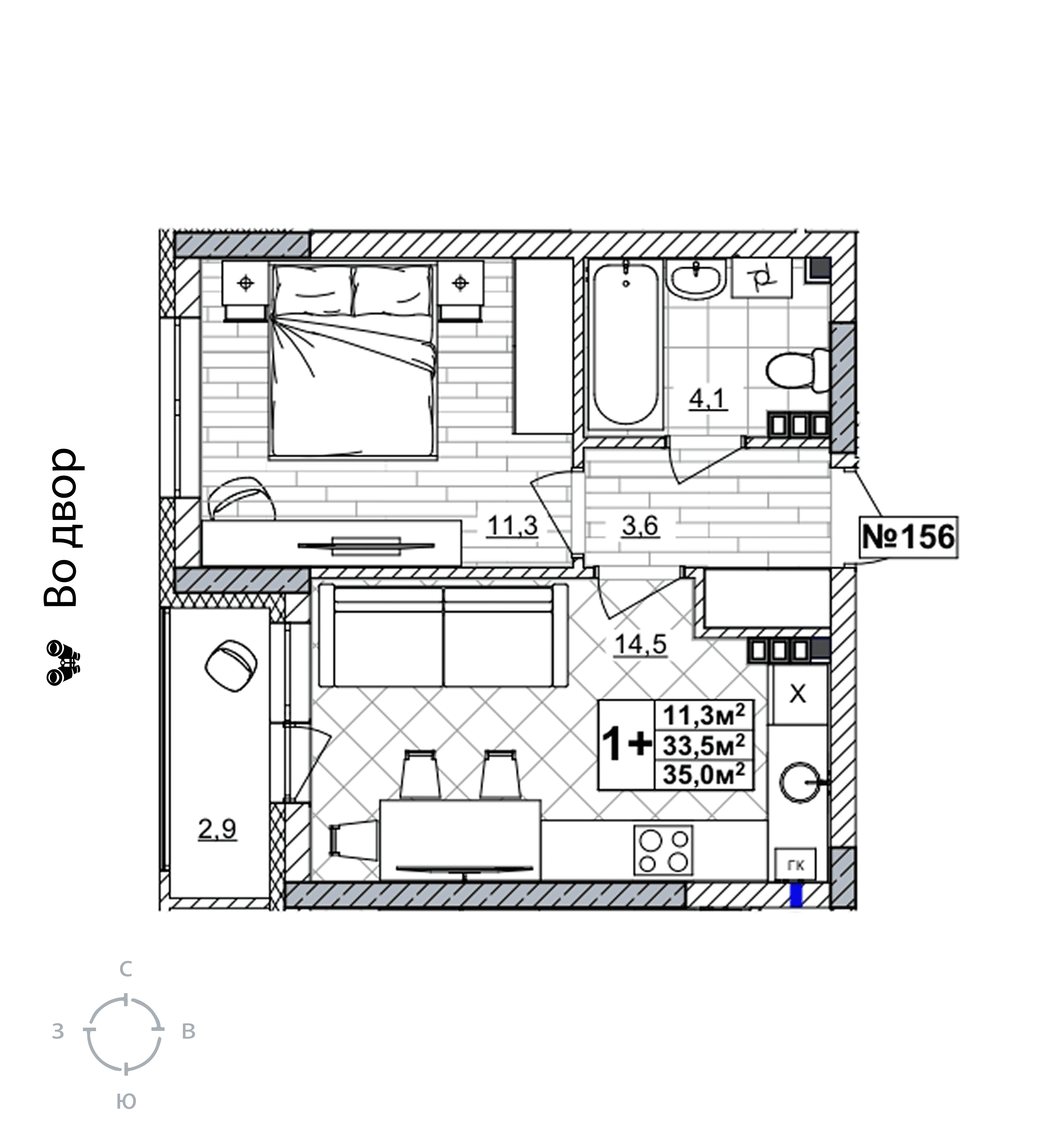 | Жилая площадь | 11.3 кв.м. |