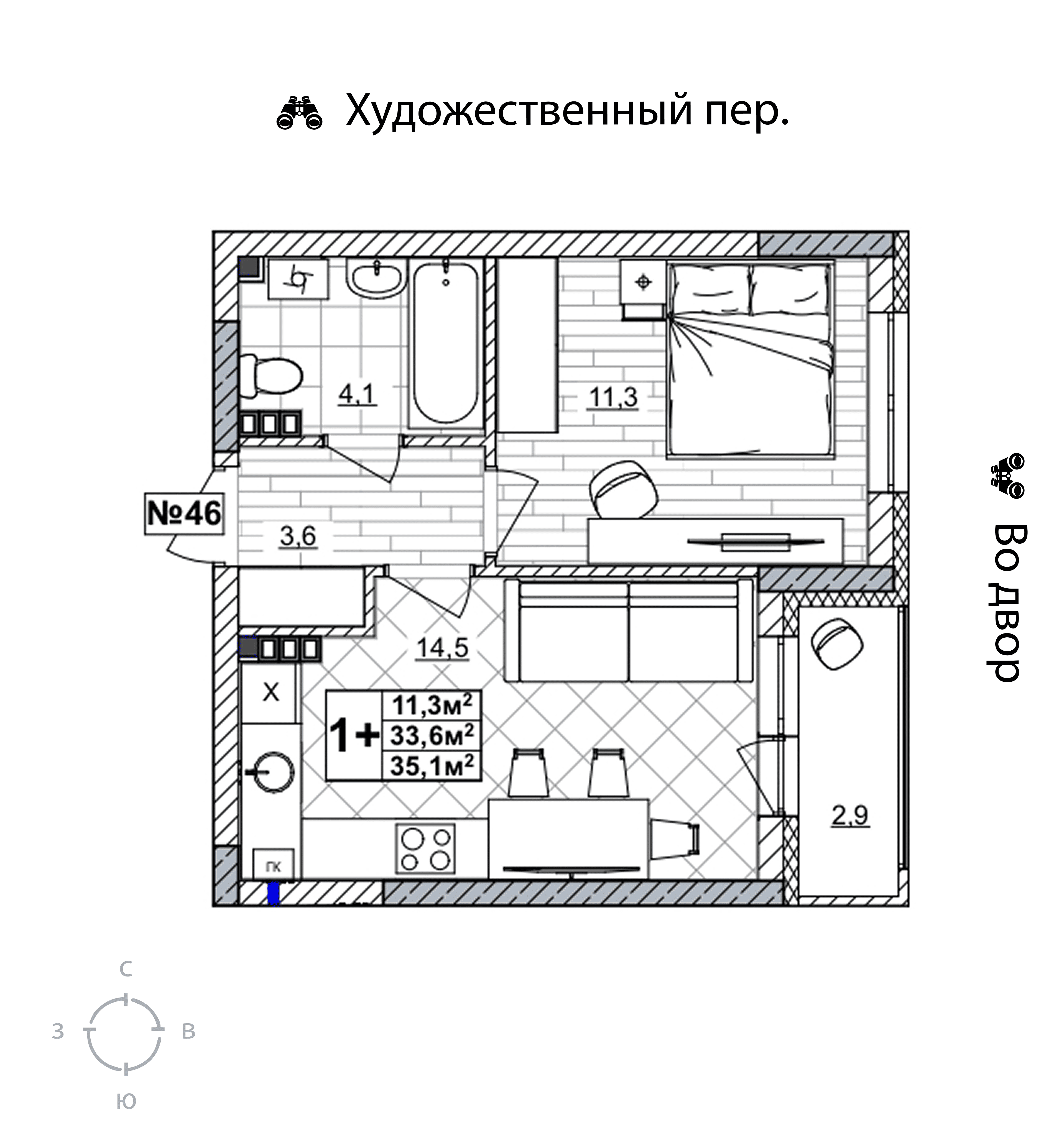 Площадь 35 кв.м.