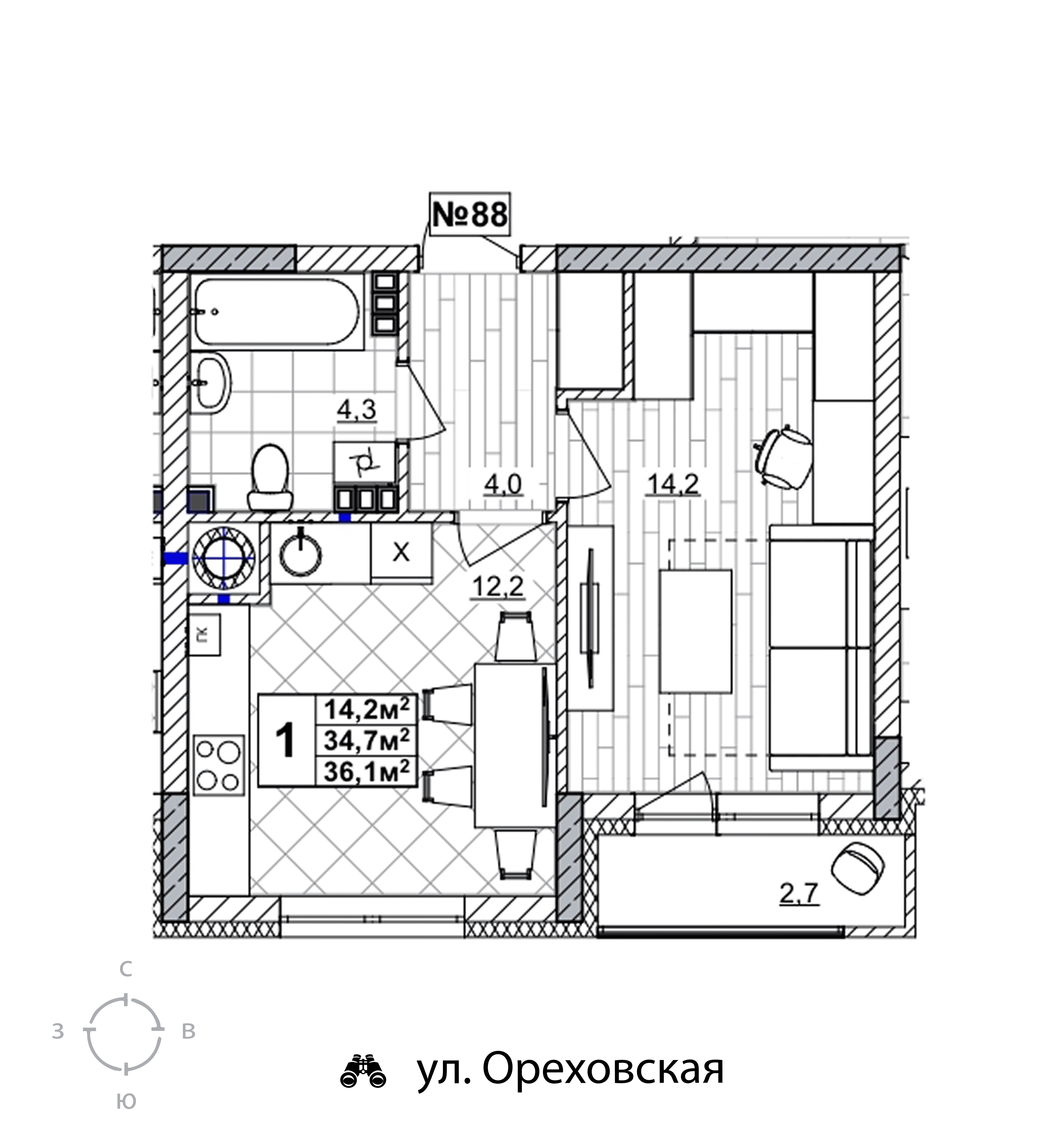 | Жилая площадь | 14.2 кв.м. |