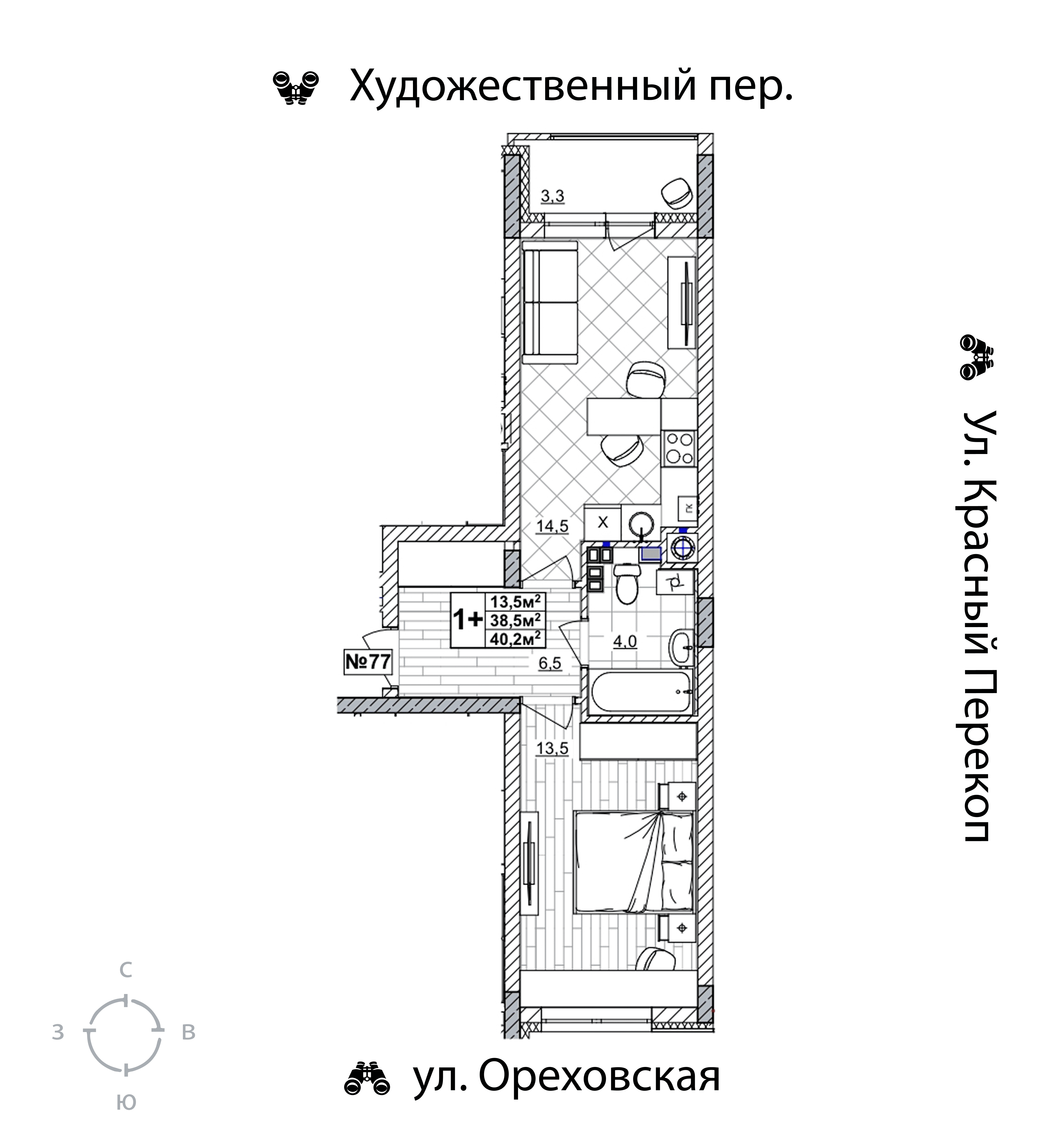 В продаже 1-комнатная квартира в новостройке жилого комплекса "Смородина" на 2 этаже, общая площадь40.2 м.кв., кухня 14.5 м.кв. Жилой комплекс располагается по адресу Зеленховоская-Парышевская-Ореховская, 2. Стоимость данной квартиры составляет 7 590 000 рублей. На нашем сайте DOMEX, Вы можете оставить бесплатную on-line заявку на это предложение и с Вами свяжется напрямую застройщик.