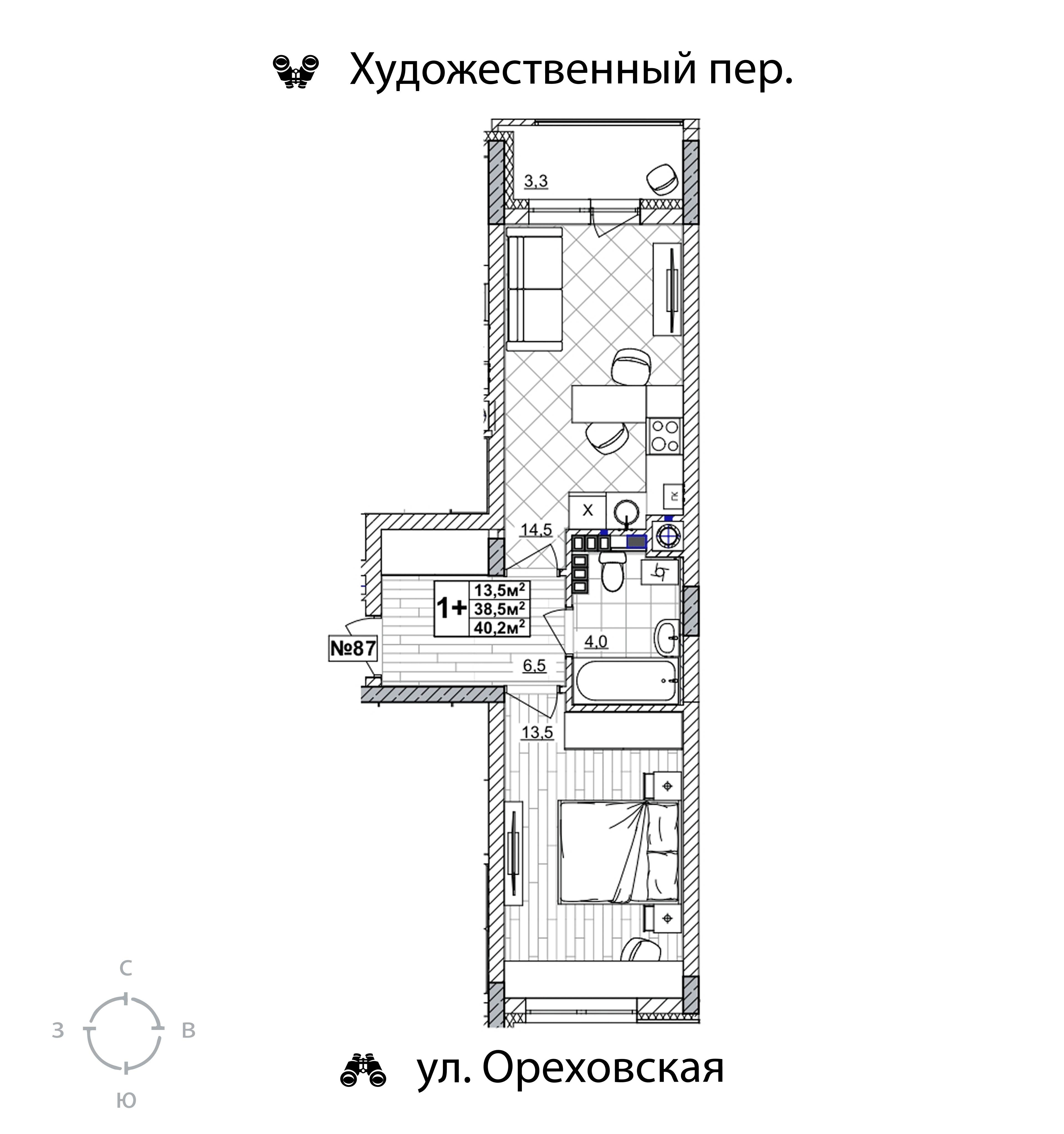 | Площадь кухни | 14.5 кв.м. |