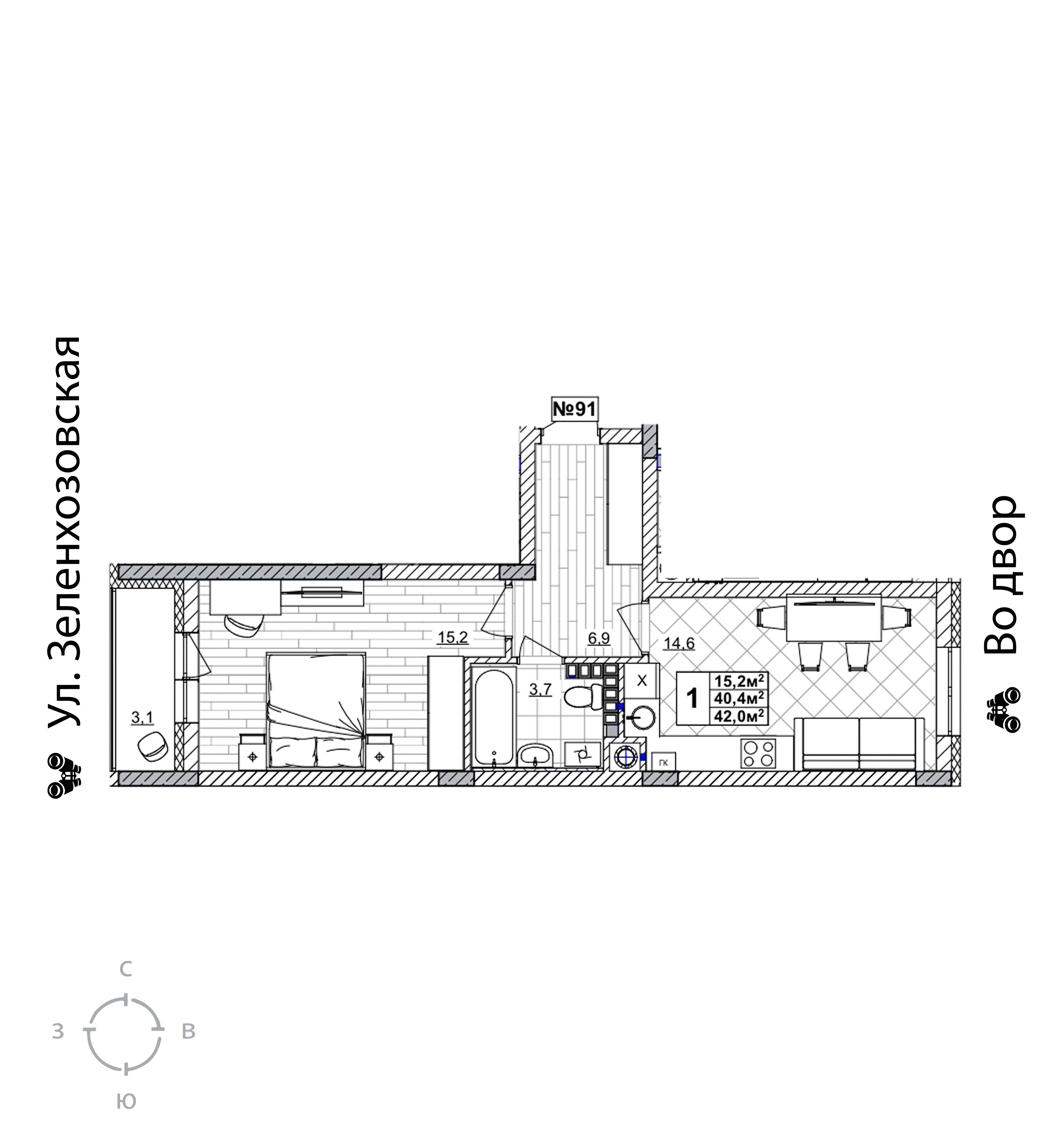 | Жилая площадь | 15.2 кв.м. |