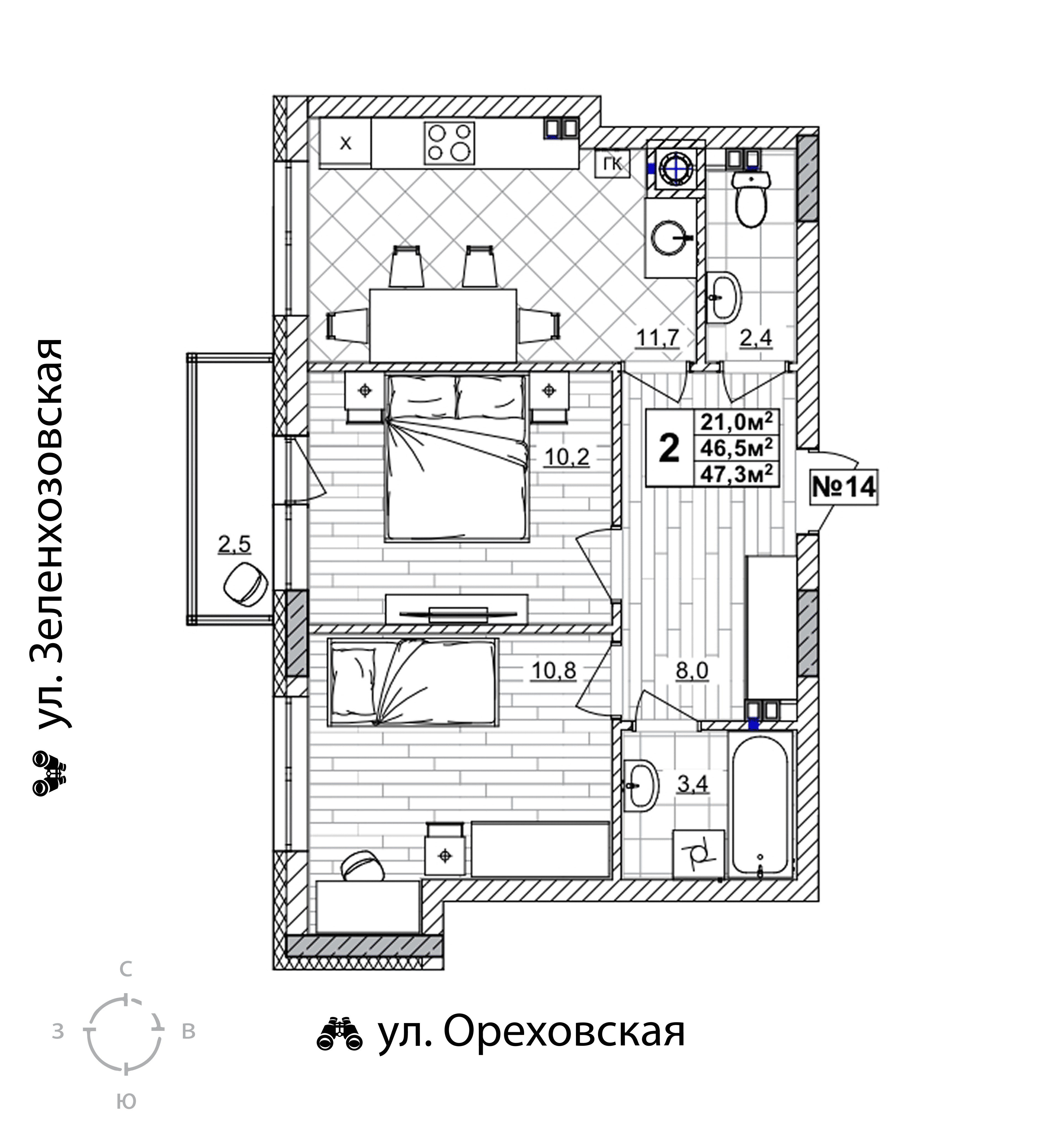 В продаже 2-комнатная квартира в новостройке жилого комплекса "Смородина" на 2 этаже, общая площадь47.3 м.кв., кухня 11.7 м.кв. Жилой комплекс располагается по адресу Зеленховоская-Парышевская-Ореховская, 2. Стоимость данной квартиры составляет 8 390 000 рублей. На нашем сайте DOMEX, Вы можете оставить бесплатную on-line заявку на это предложение и с Вами свяжется напрямую застройщик.