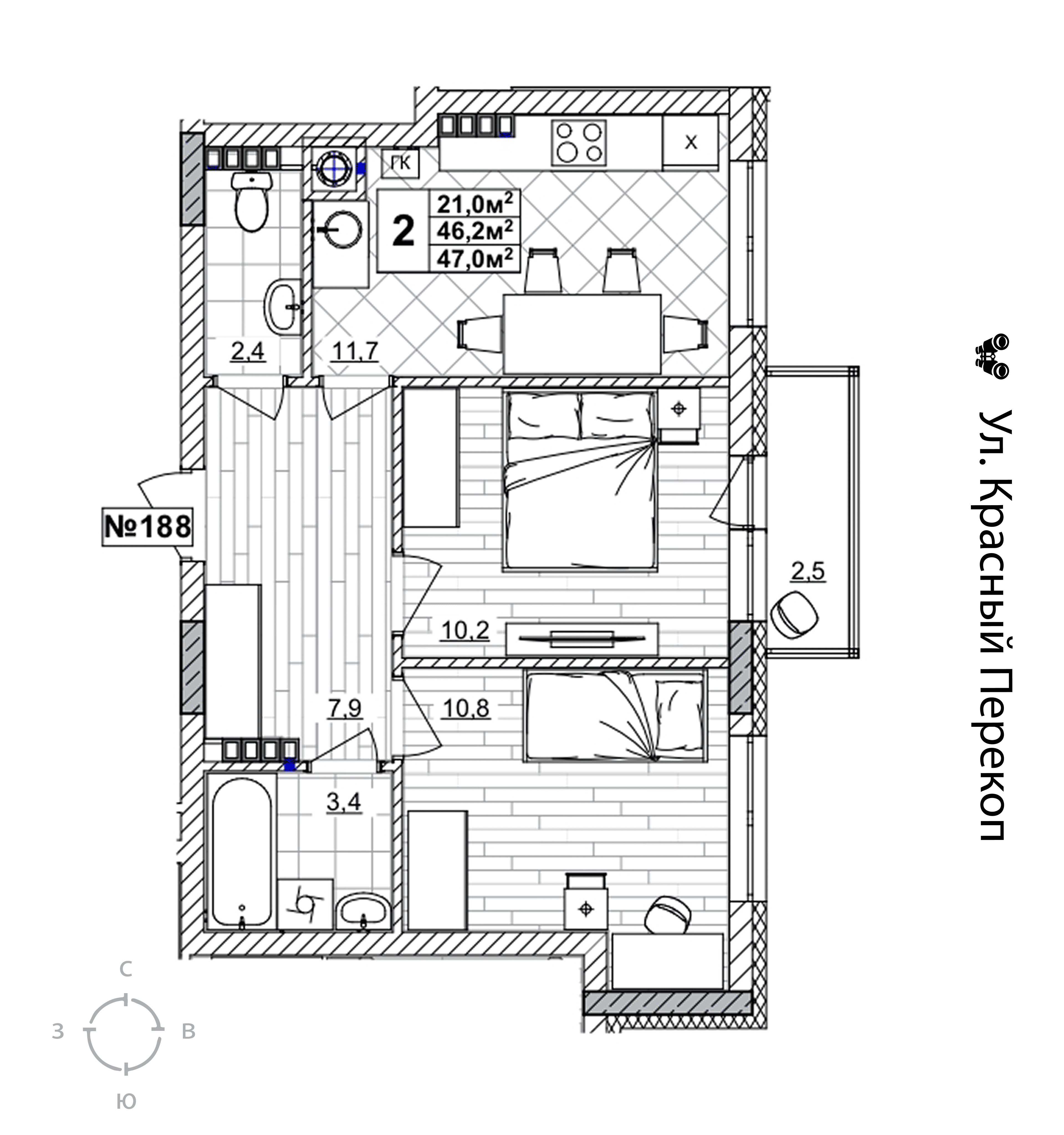 Площадь 47 кв.м.