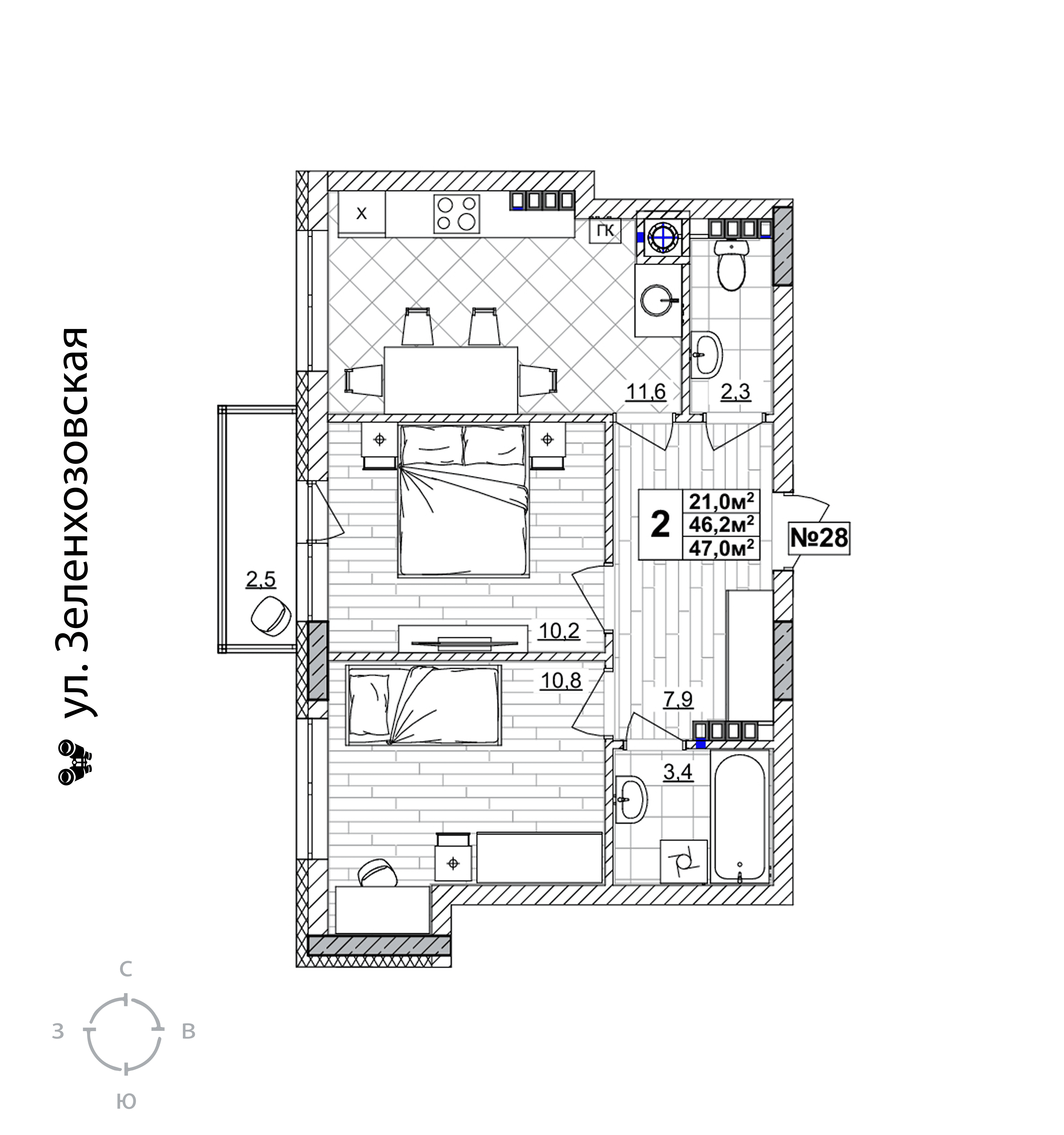 | Жилая площадь | 21 кв.м. |