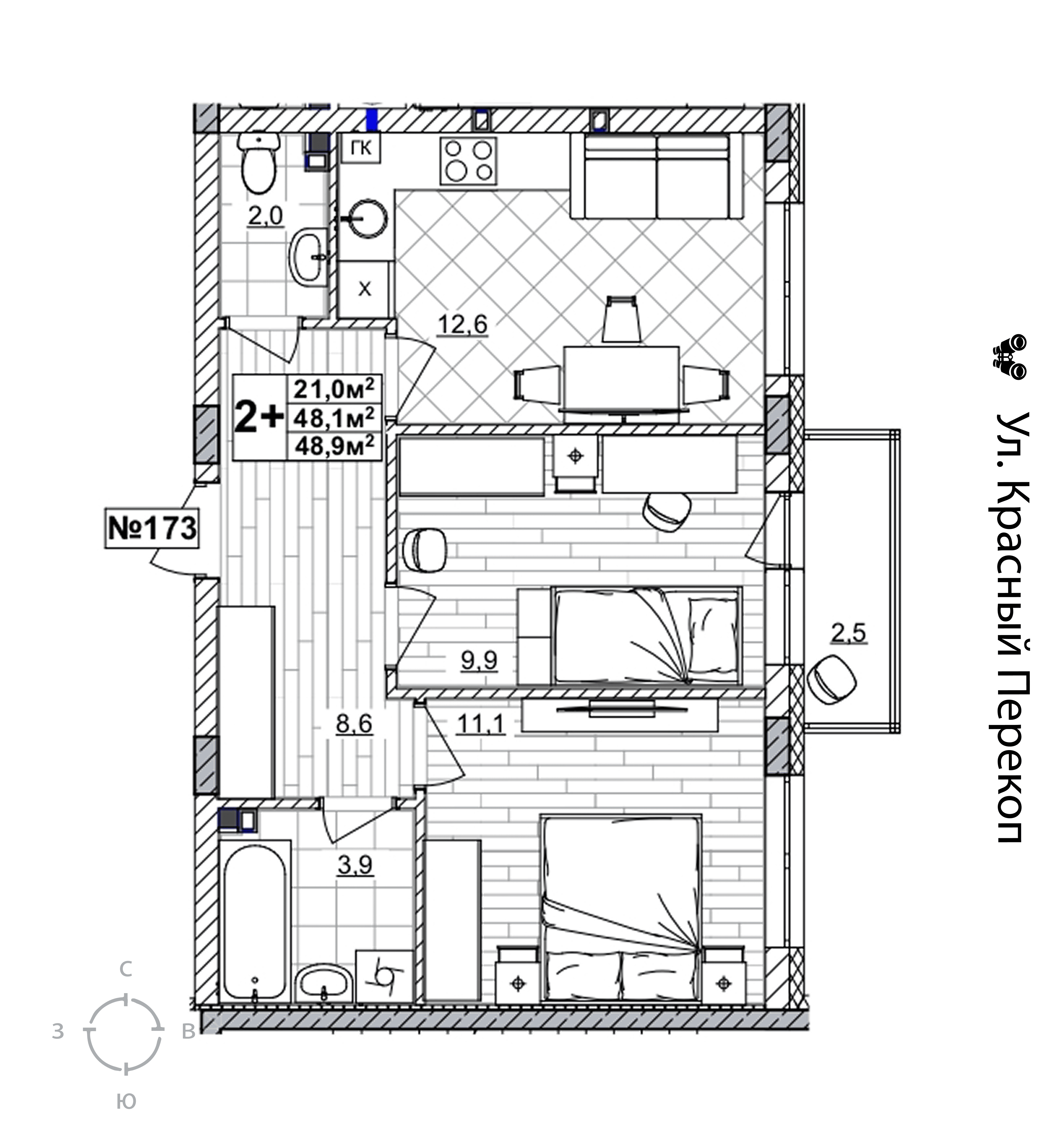 Квартира в ЖК «Смородина» 48.9м2 на 1 этаже
