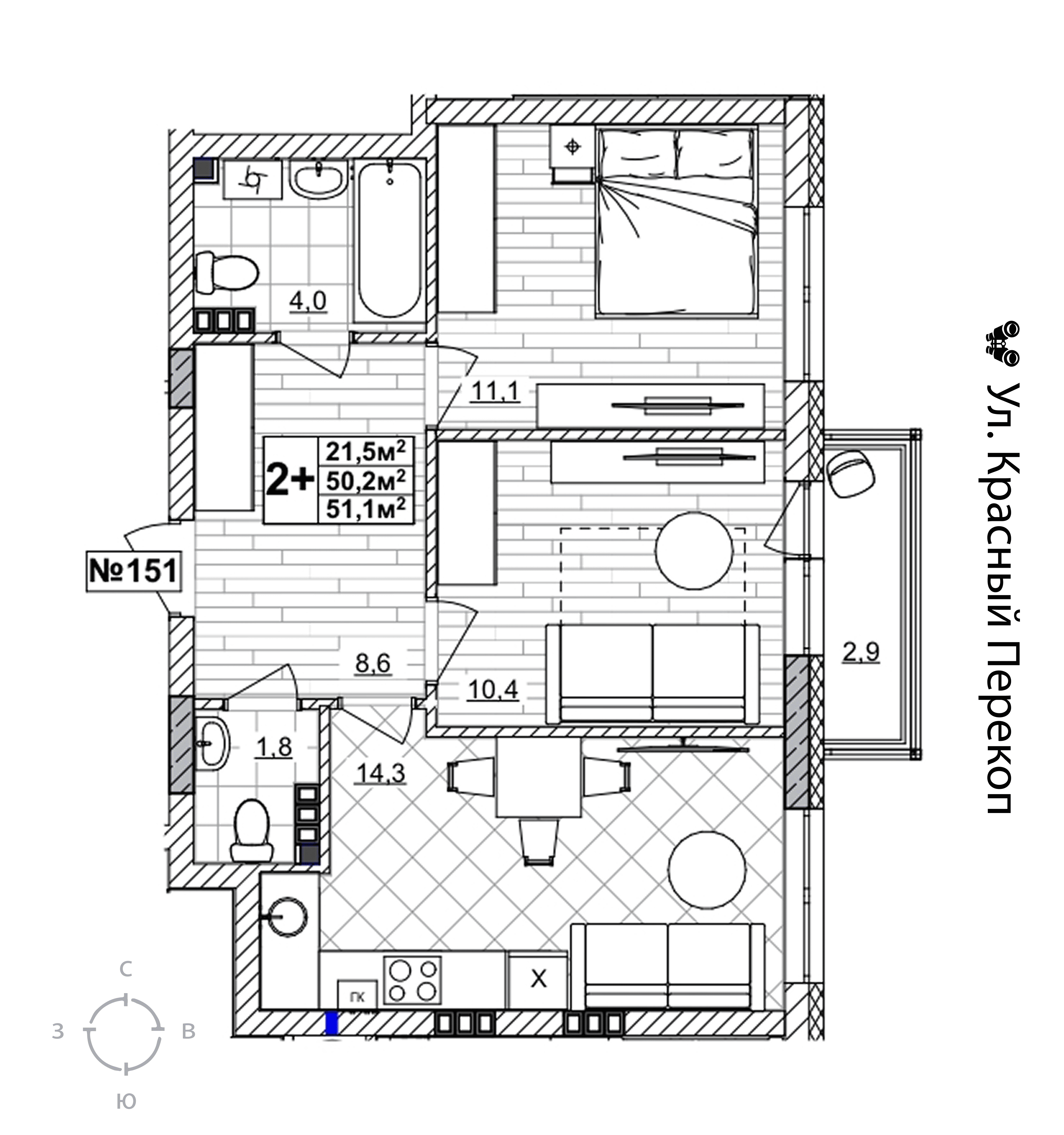| Площадь | 51.1 кв.м. |