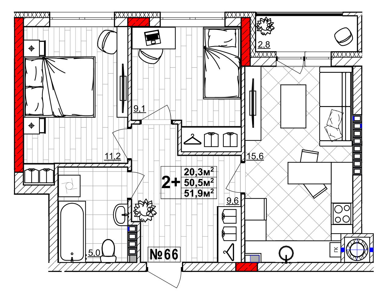 | Площадь | 51.9 кв.м. |