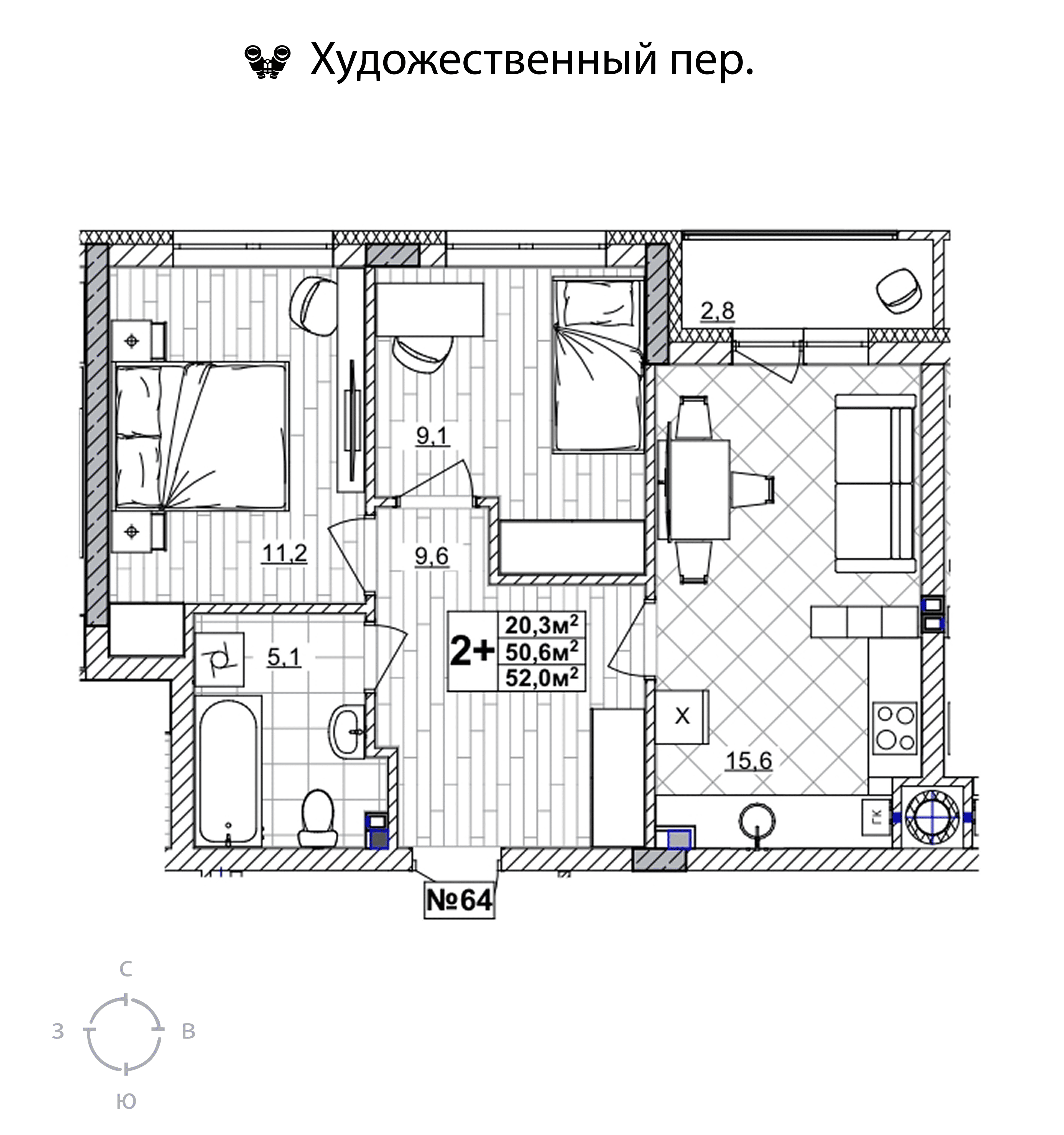 | Площадь | 52 кв.м. |