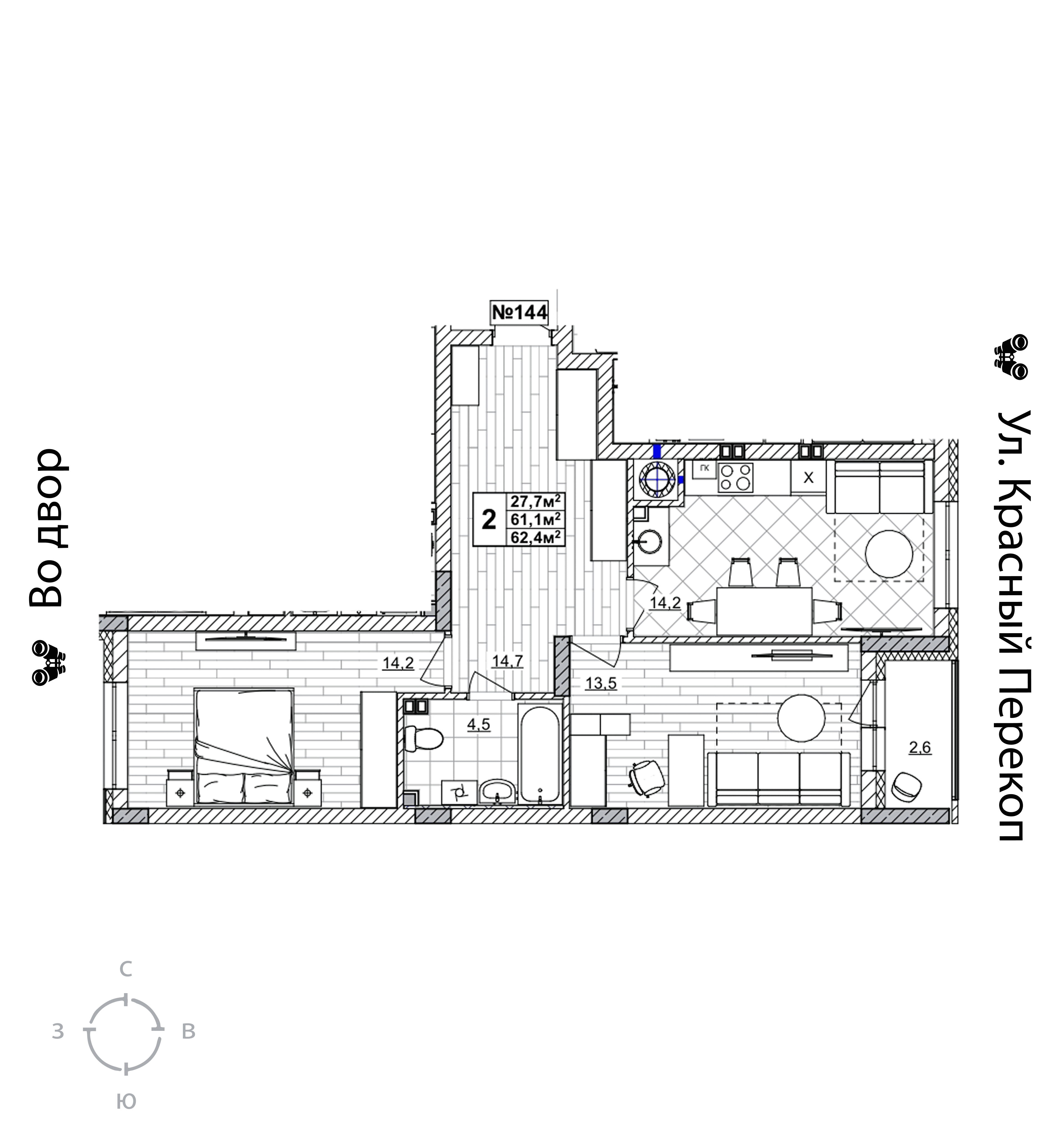 | Площадь кухни | 14.2 кв.м. |